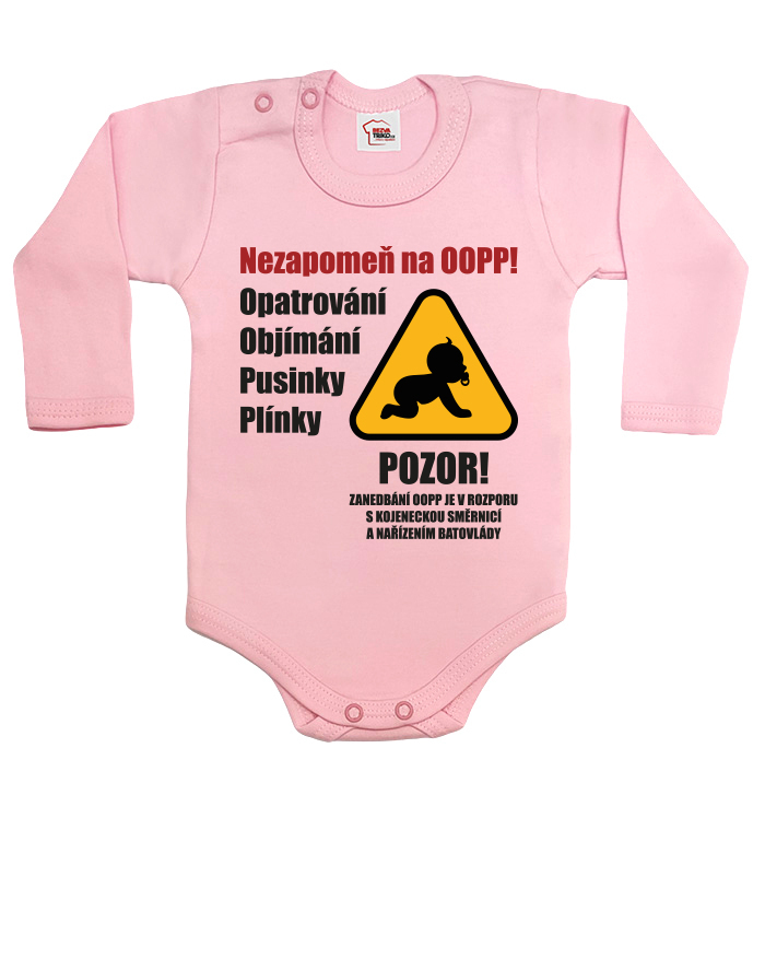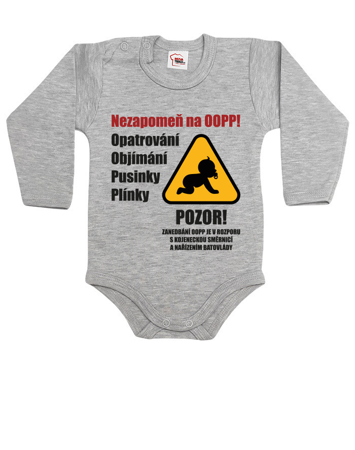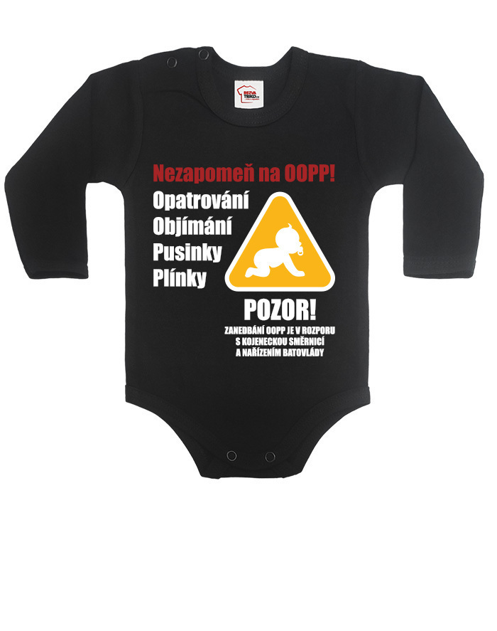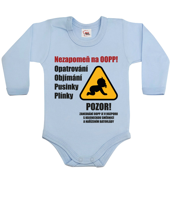 Prezrieť hodnotenie na Heureka.skToto vtipné a zároveň roztomilé detské body s potlačou „Nezabudni na OOPP!“ je ideálnou voľbou pre všetky bábätká, ktoré chcú dať svojmu okoliu jasne najavo, čo je pri starostlivosti o ne naozaj dôležité - opatrovanie, maznanie, bozky a plienky. Originálny dizajn s výstražným štítkom a vtipným textom pripomínajúcim „predpisy pre batoľatá“ z neho urobí obľúbený kúsok v šatníku každého malého šéfa alebo hlavy domácnosti. Body je vhodné pre novorodencov a batoľatá a je skvelé ako darček k narodeniu dieťaťa, krstinám, narodeninám alebo aj ako vianočné prekvapenie pre nových rodičov. Je to dokonalý spôsob, ako vyčariť úsmev na tvári pri každom prebaľovaní bábätka. Hodí sa aj ako originálne oblečenie na rodinné fotenie alebo na prvú návštevu starých rodičov. Kvalitný bavlnený materiál zabezpečí pohodlie počas celého dňa a praktické zapínanie uľahčí prebaľovanie. Tento kúsok poteší každého, kto má zmysel pre humor a zároveň miluje roztomilé detské oblečenie s nápadom. Body je nielen praktickým oblečením, ale aj milým posolstvom, že láskavá starostlivosť je tou najväčšou povinnosťou. Ak hľadáte neotrelý darček, ktorý vyčarí úsmev na tvári a zároveň zahreje pri srdci, práve ste ho našli.