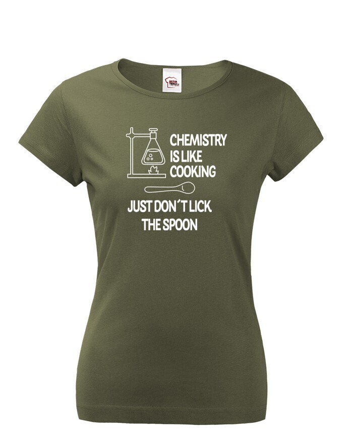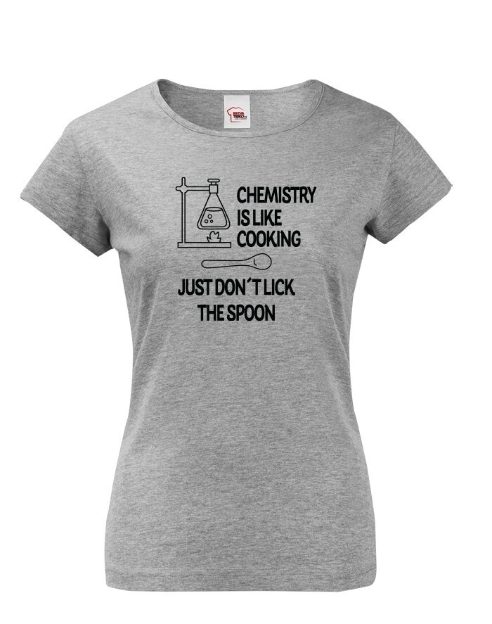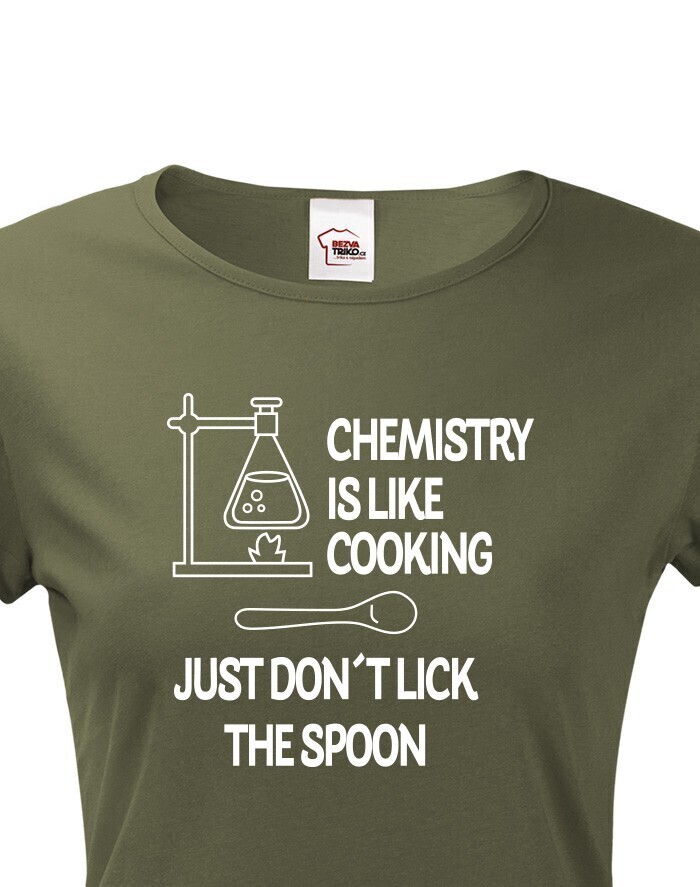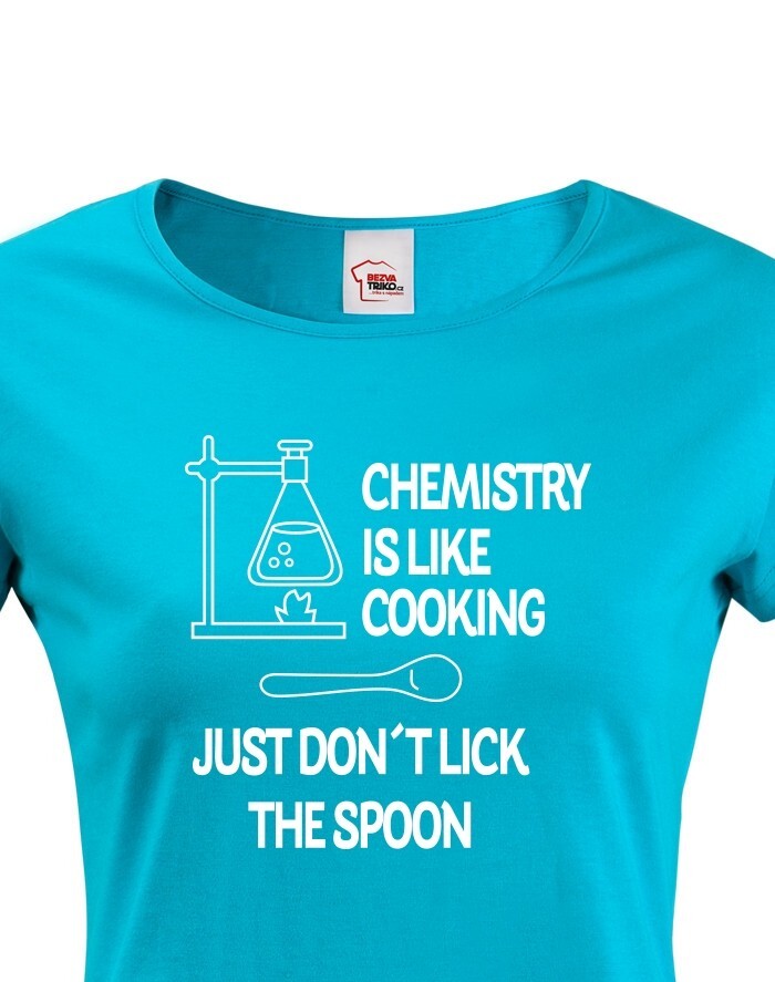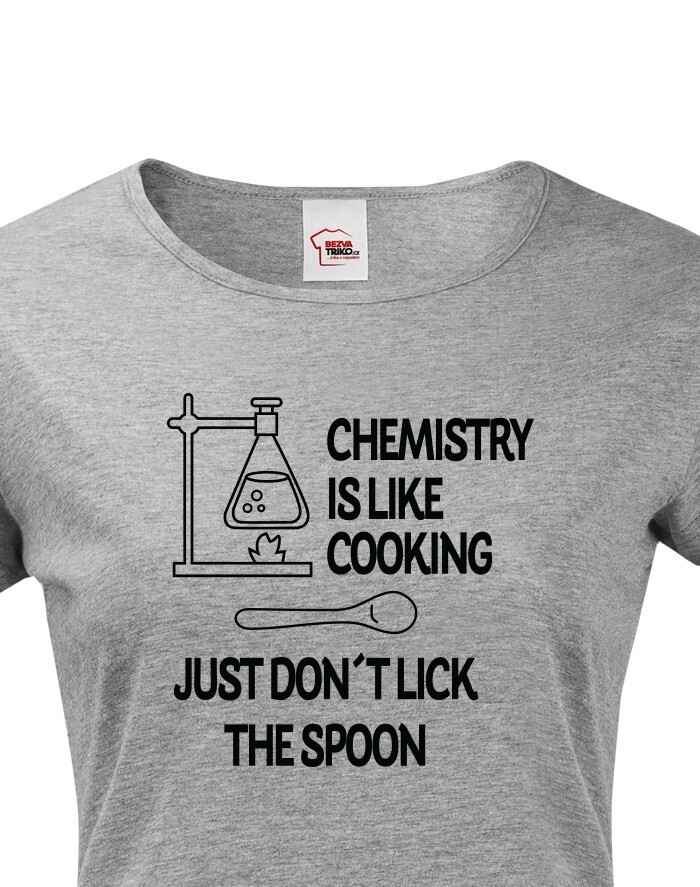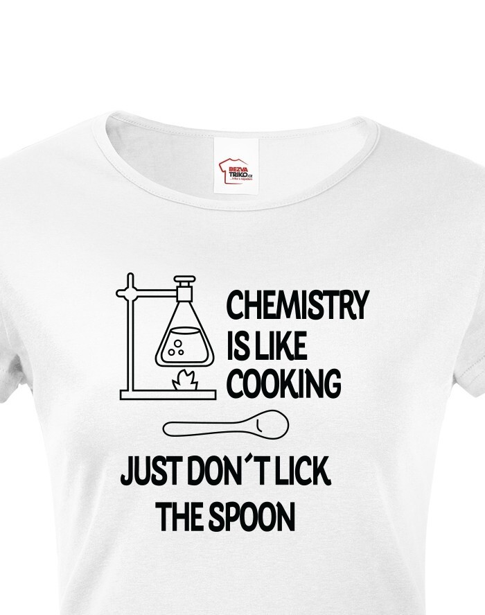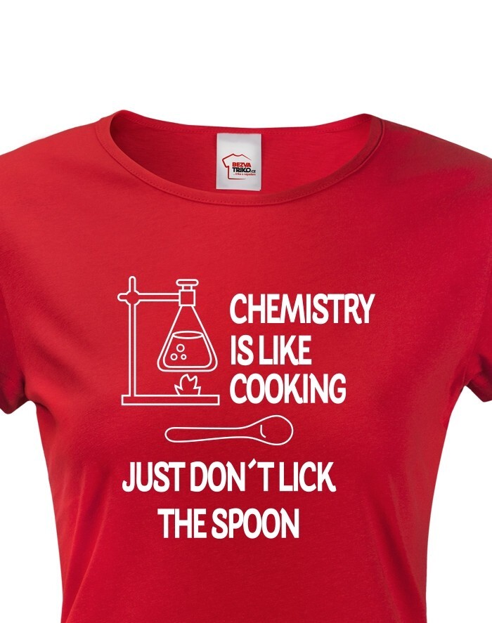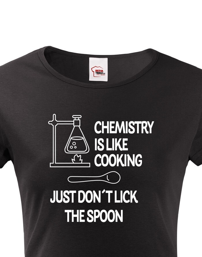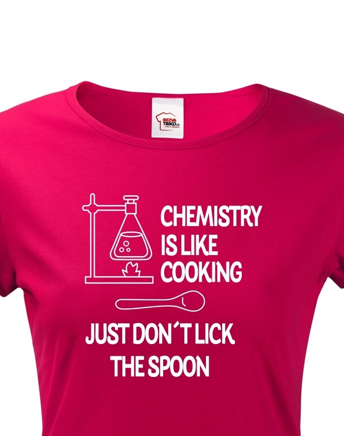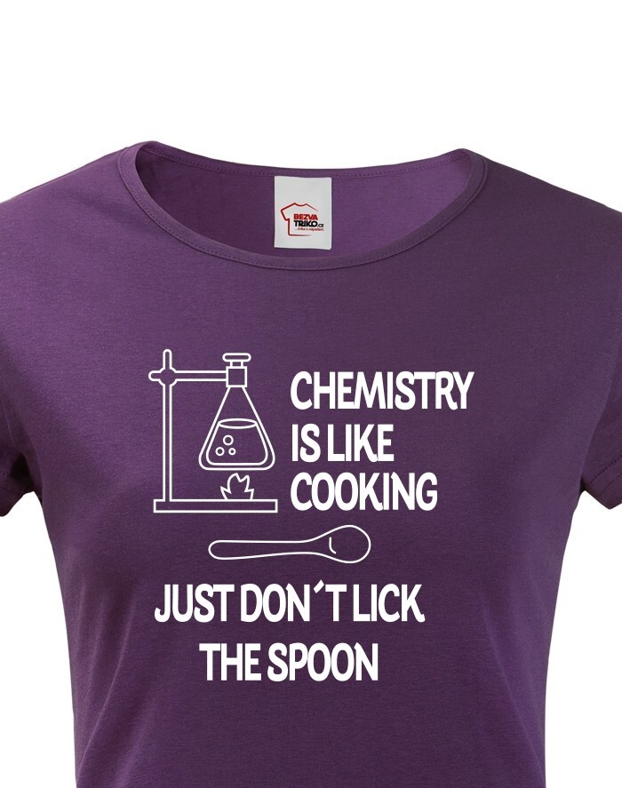 Toto tričko s potlačou bude skvelý darček pre každú chemičku. Tričko si robí srandu z chémie a trochu ju zľahčuje. Potlač "Chemistry is like Cooking. Just dont lick the Spoon" znamená v preklade "Chémia je ako varenie, len nesmiete olizovať lyžicu" si zamilujete. Potlač sa hodí ako do práce, tak do školy medzi chemikov spolužiakov, tak samozrejme aj len tak na bežné nosenie. Urob týmto tričkom radosť alebo si ho kúp len tak pre radosť.