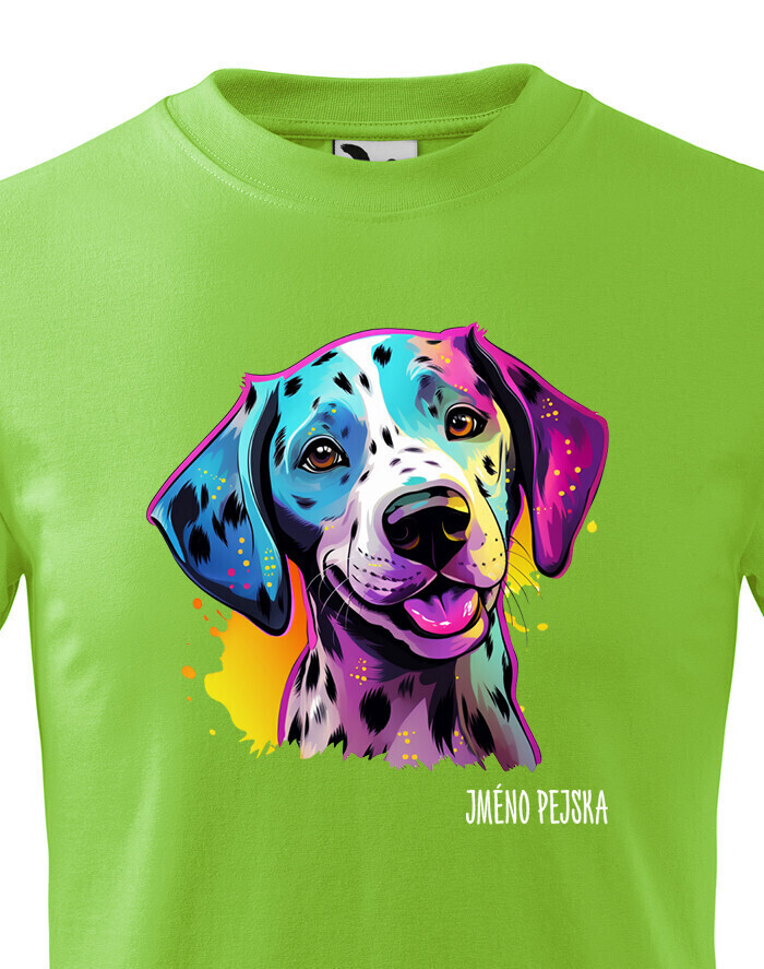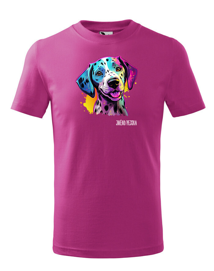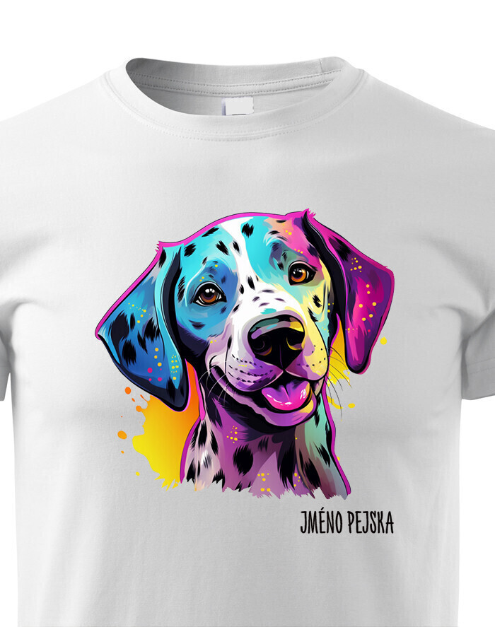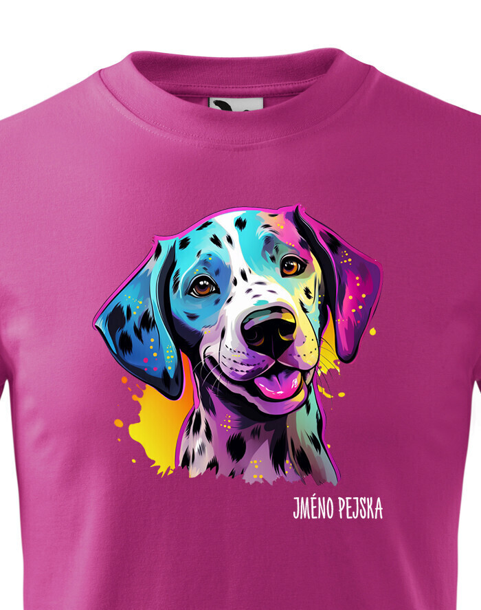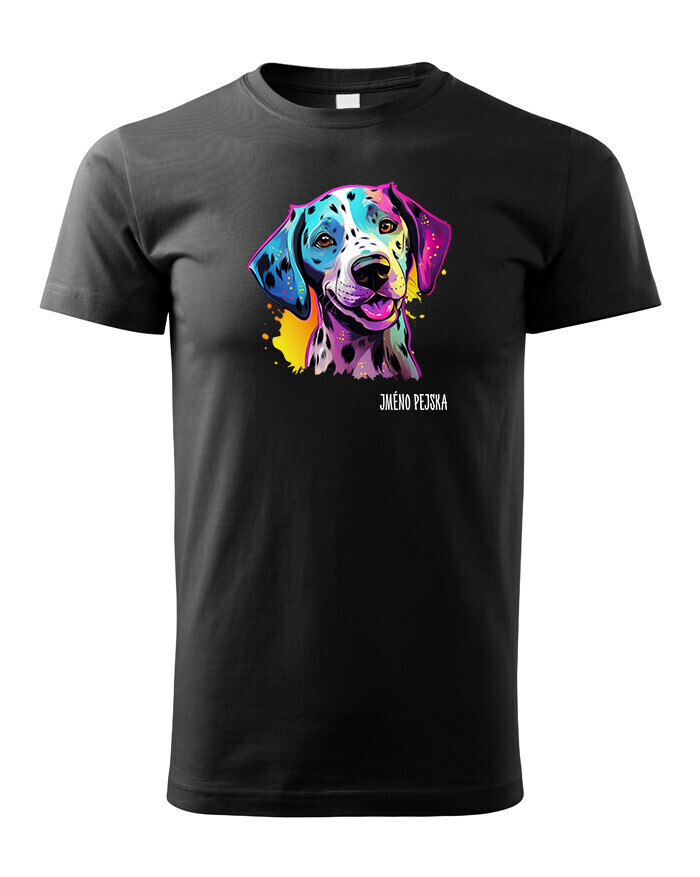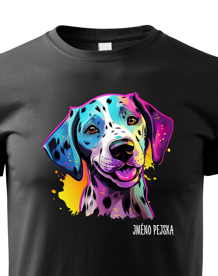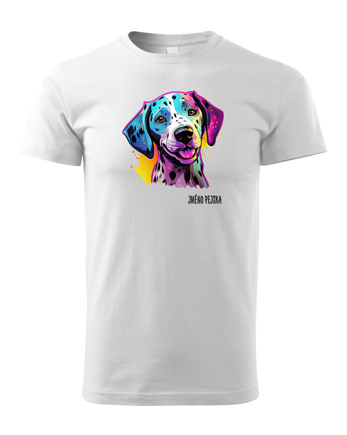 Oživte váš šatník s naším štýlovým tričkom s potlačou plemena Dalmatín! Pre všetkých milovníkov psov je toto tričko ideálnym spôsobom, ako vyjadriť vašu lásku k tomuto nádhernému plemenu. Je to tiež skvelý darček na narodeniny alebo Vianoce pre vašich blízkych, ktorí zdieľajú vašu vášeň pre psy. Dalmatín je plemeno známe svojimi charakteristickými čiernymi alebo hnedými škvrnami, ktoré pokrývajú ich biele telo. Sú to veselí, energickí a inteligentní psi, ktorí si získavajú srdcia svojich majiteľov svojou oddanosťou a hravosťou. Dalmatíni majú silný inštinkt a sú skvelí spoločníci pre aktívnych ľudí, ktorí sa radi venujú rôznym vonkajším aktivitám. Naše tričko obsahuje kolekciu ručne kreslených dalmatínov v neónových farbách, ktorá dodáva vášmu štýlu zábavný a výrazný nádych. Jeho potlač bude vynikať najmä na bielom, modrom alebo čiernom pozadí, čo vám umožní vybrať si farbu, ktorá najlepšie vyjadruje váš osobný štýl. Oslovte svojho miláčika s týmto jedinečným tričkom a oslavujte jedinečnú krásu plemena Dalmatín!