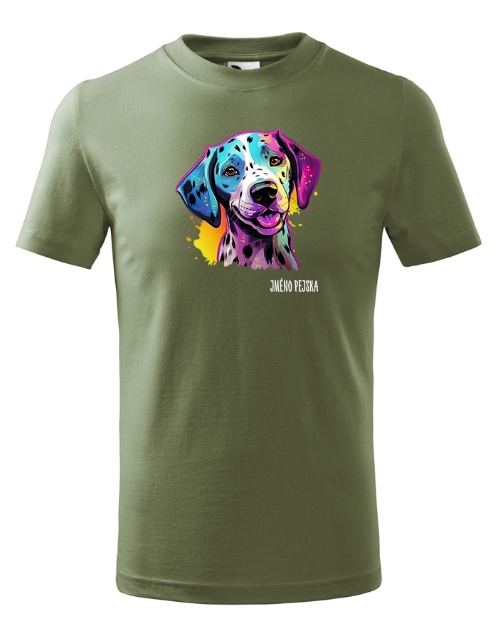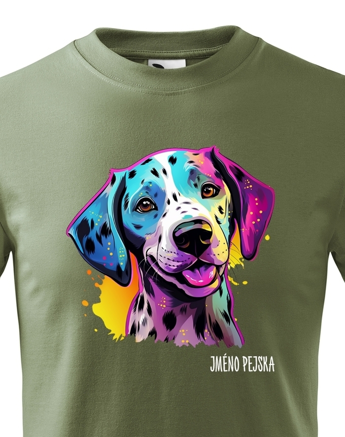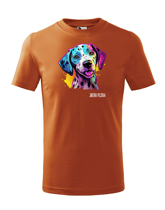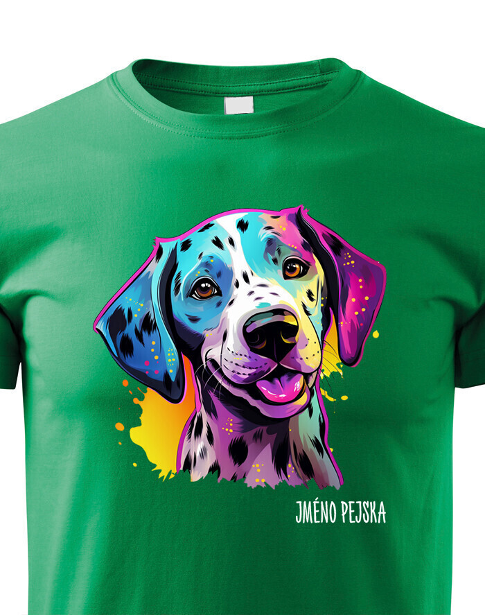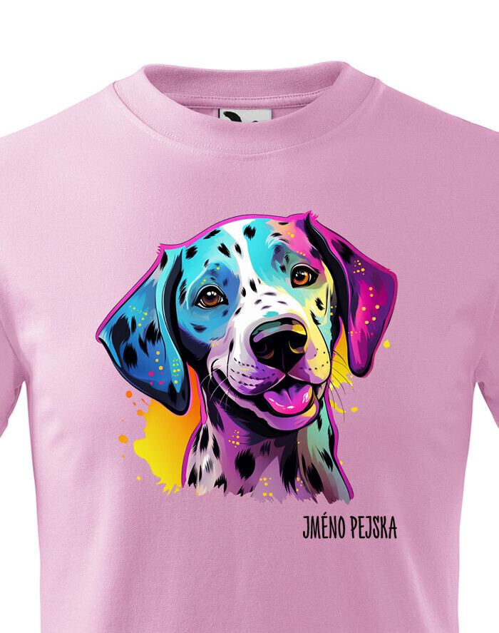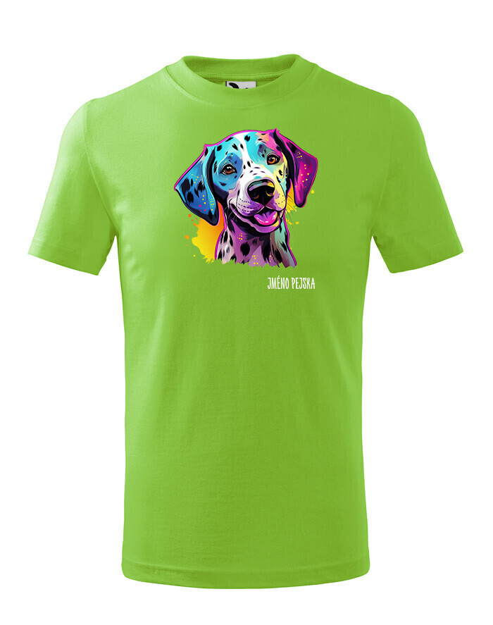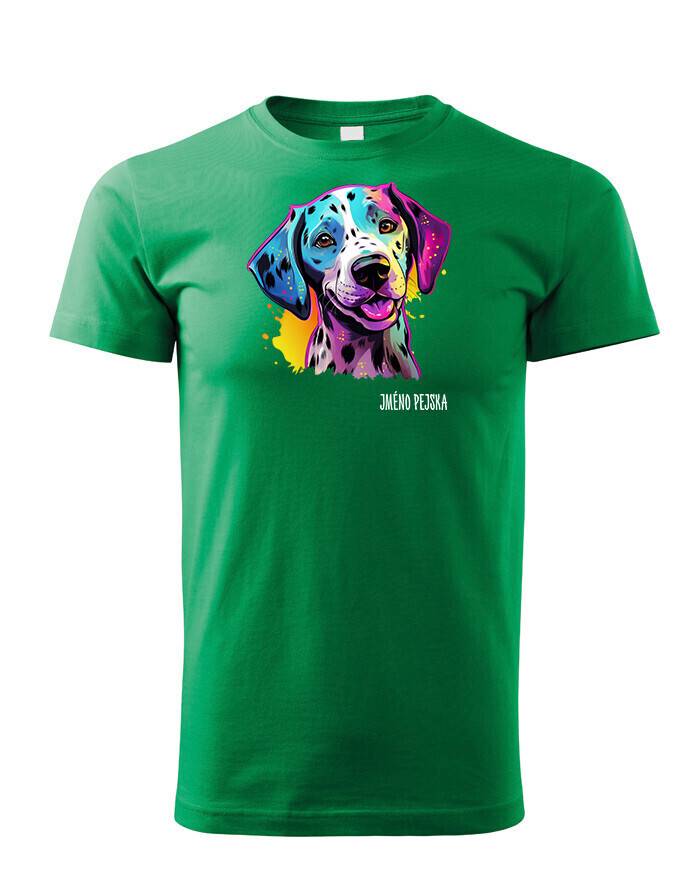 Oživte váš šatník s naším štýlovým tričkom s potlačou plemena Dalmatín! Pre všetkých milovníkov psov je toto tričko ideálnym spôsobom, ako vyjadriť vašu lásku k tomuto nádhernému plemenu. Je to tiež skvelý darček na narodeniny alebo Vianoce pre vašich blízkych, ktorí zdieľajú vašu vášeň pre psy. Dalmatín je plemeno známe svojimi charakteristickými čiernymi alebo hnedými škvrnami, ktoré pokrývajú ich biele telo. Sú to veselí, energickí a inteligentní psi, ktorí si získavajú srdcia svojich majiteľov svojou oddanosťou a hravosťou. Dalmatíni majú silný inštinkt a sú skvelí spoločníci pre aktívnych ľudí, ktorí sa radi venujú rôznym vonkajším aktivitám. Naše tričko obsahuje kolekciu ručne kreslených dalmatínov v neónových farbách, ktorá dodáva vášmu štýlu zábavný a výrazný nádych. Jeho potlač bude vynikať najmä na bielom, modrom alebo čiernom pozadí, čo vám umožní vybrať si farbu, ktorá najlepšie vyjadruje váš osobný štýl. Oslovte svojho miláčika s týmto jedinečným tričkom a oslavujte jedinečnú krásu plemena Dalmatín!