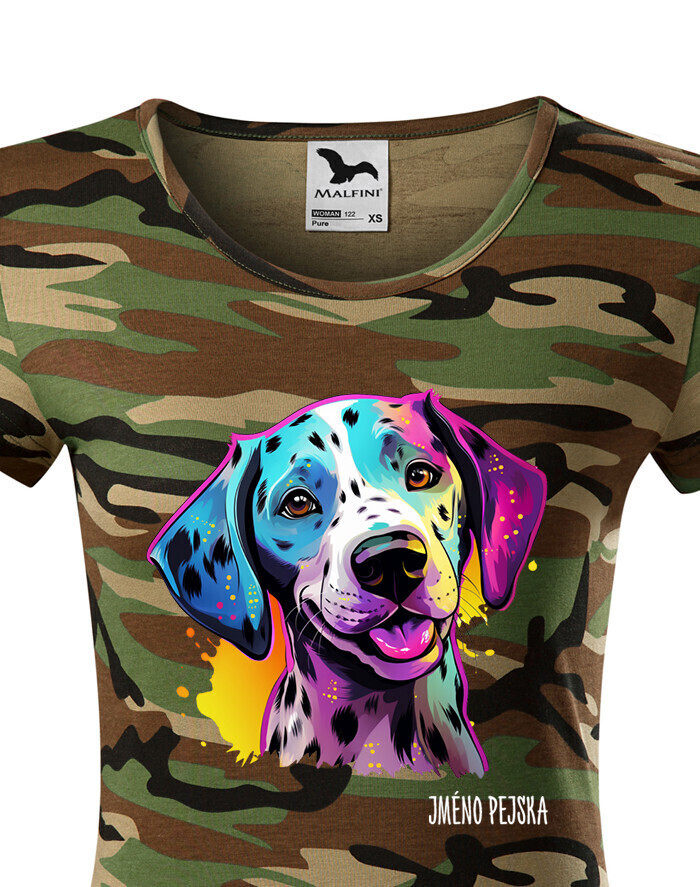Oživte váš šatník s naším štýlovým tričkom s potlačou plemena Dalmatín! Pre všetkých milovníkov psov je toto tričko ideálnym spôsobom, ako vyjadriť vašu lásku k tomuto nádhernému plemenu. Je to tiež skvelý darček na narodeniny alebo Vianoce pre vašich blízkych, ktorí zdieľajú vašu vášeň pre psy. Dalmatín je plemeno známe svojimi charakteristickými čiernymi alebo hnedými škvrnami, ktoré pokrývajú ich biele telo. Sú to veselí, energickí a inteligentní psi, ktorí si získavajú srdcia svojich majiteľov svojou oddanosťou a hravosťou. Dalmatíni majú silný inštinkt a sú skvelí spoločníci pre aktívnych ľudí, ktorí sa radi venujú rôznym vonkajším aktivitám. Naše tričko obsahuje kolekciu ručne kreslených dalmatínov v neónových farbách, ktorá dodáva vášmu štýlu zábavný a výrazný nádych. Jeho potlač bude vynikať najmä na bielom, modrom alebo čiernom pozadí, čo vám umožní vybrať si farbu, ktorá najlepšie vyjadruje váš osobný štýl. Oslovte svojho miláčika s týmto jedinečným tričkom a oslavujte jedinečnú krásu plemena Dalmatín!