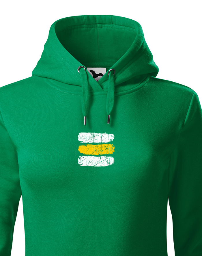 Mikina je vyrobená z mäkkej a hrejivej bavlnenej zmesi, ktorá je pohodlná, priedušná a odolná. Dámsky strih krásne sedí na postave a zaručuje voľnosť pohybu. Trvácna potlač žltej turistickej značky vydrží aj po mnohých praniach bez straty farby.