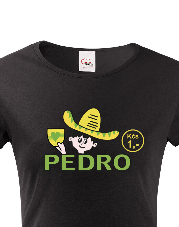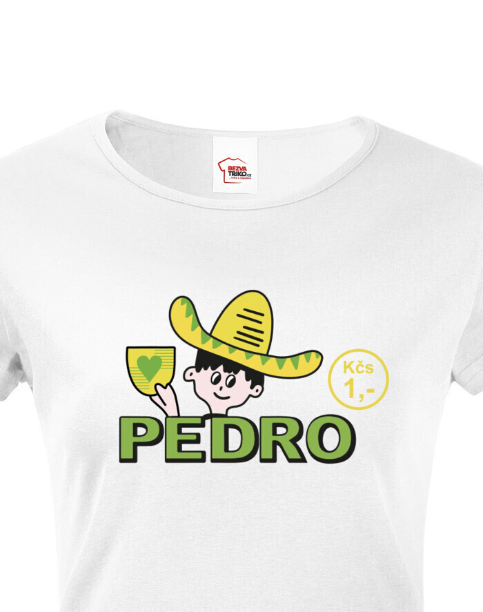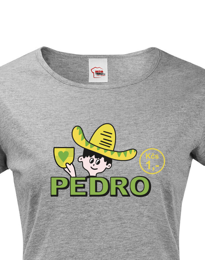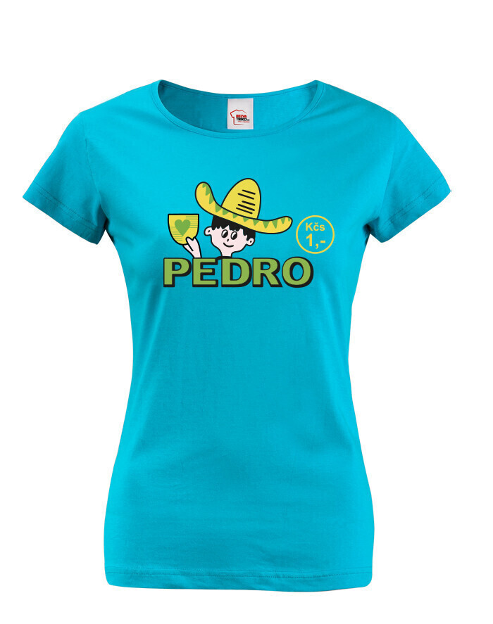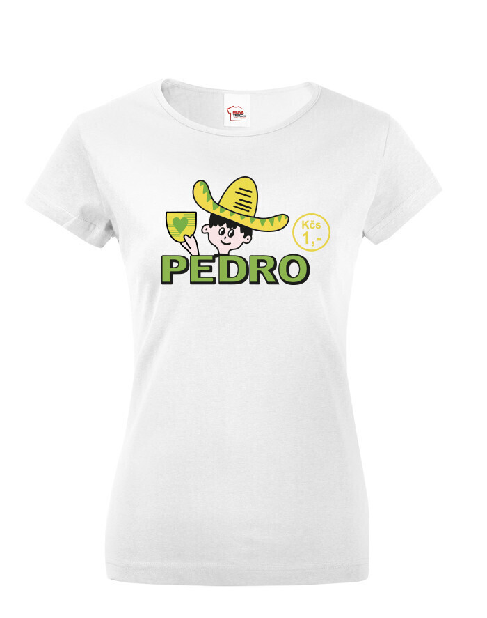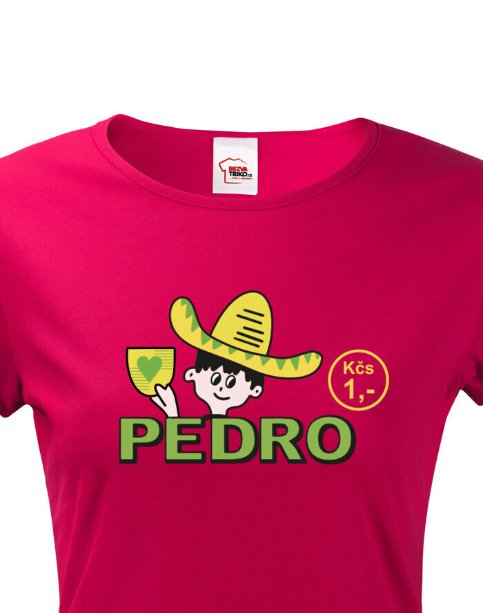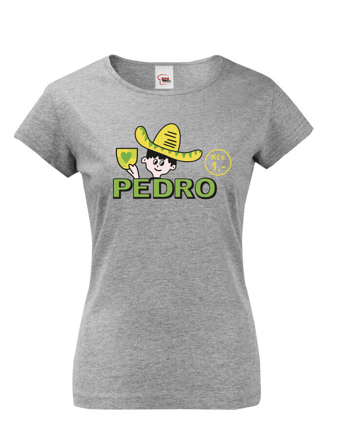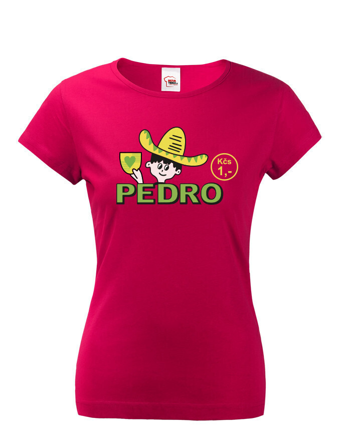 Dámské tričko s potlačou známej žuvačky Pedro. Pedro je legendárna bublinová žuvačka s ovocnou príchuťou, ktorú pozná naozaj každý. Jedny z najpopulárnejších žuvačiek na svete si určite zaslúžia byť na tričku! Tričko s potlačou Pedro zobrazuje známe logo a aj legendárnu cenu, ktorá sa s týmito žuvačkami spája. Kus žuvacej gumy zabalený do červeného papierika sa stal súčasťou každého detstva.