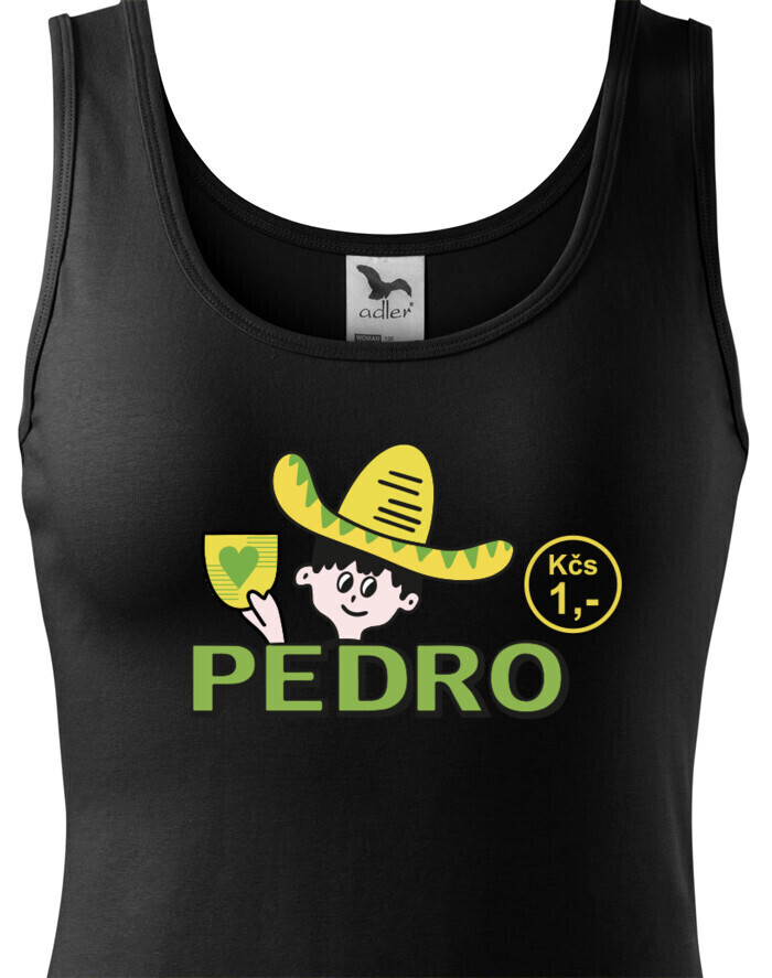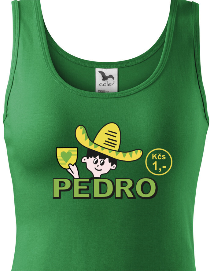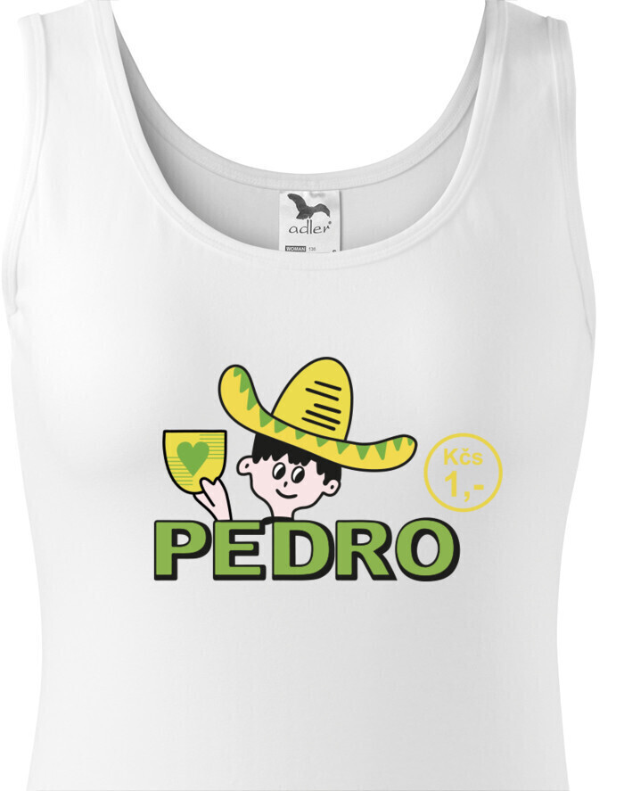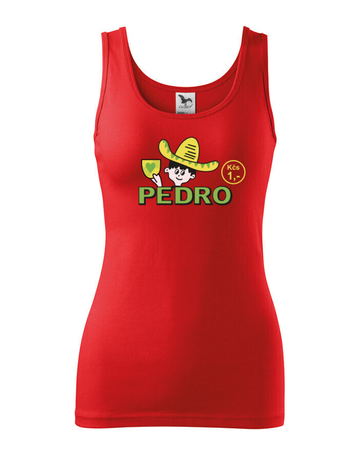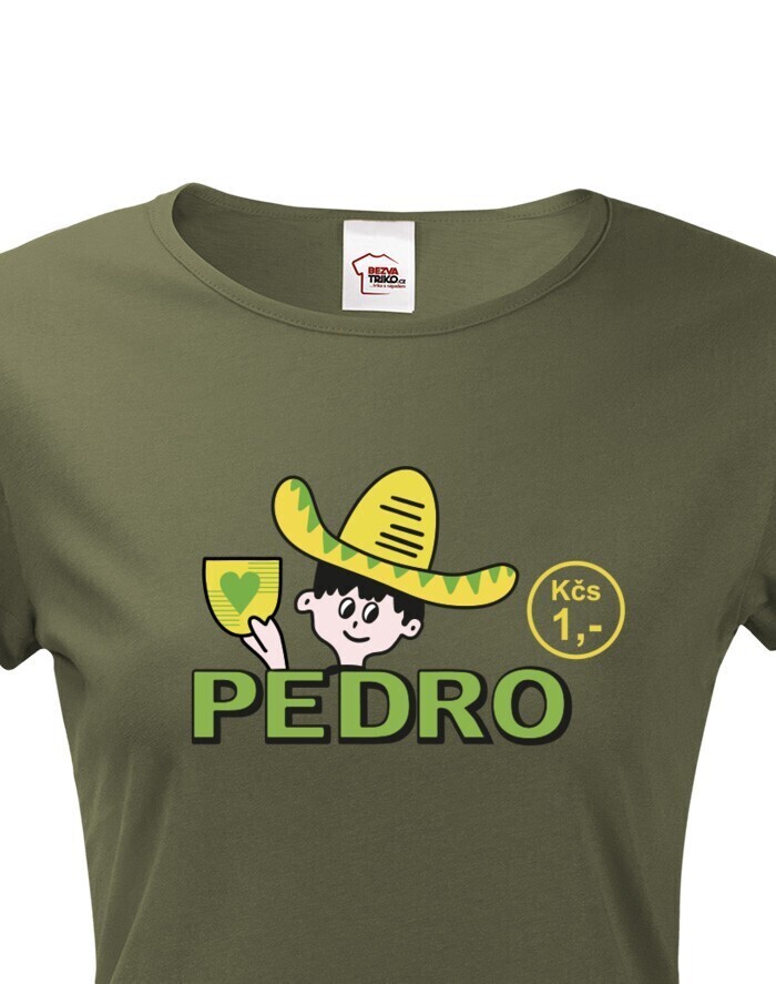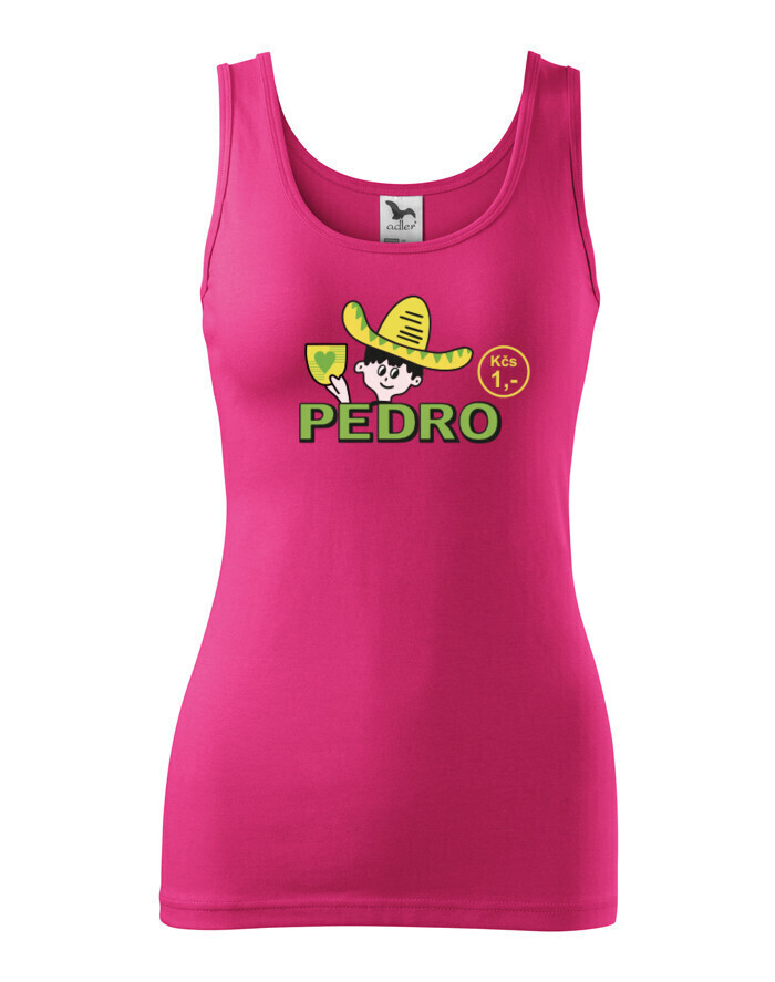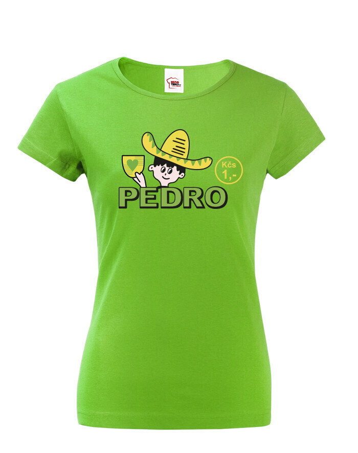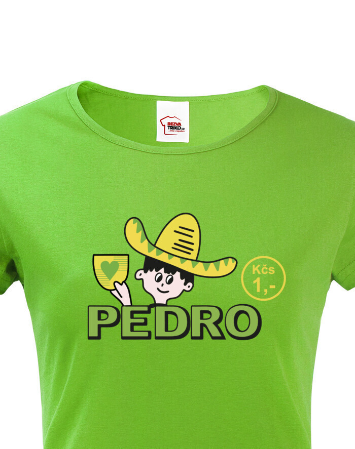 Dámské tričko s potlačou známej žuvačky Pedro. Pedro je legendárna bublinová žuvačka s ovocnou príchuťou, ktorú pozná naozaj každý. Jedny z najpopulárnejších žuvačiek na svete si určite zaslúžia byť na tričku! Tričko s potlačou Pedro zobrazuje známe logo a aj legendárnu cenu, ktorá sa s týmito žuvačkami spája. Kus žuvacej gumy zabalený do červeného papierika sa stal súčasťou každého detstva.