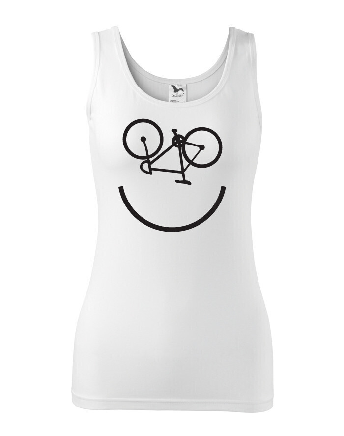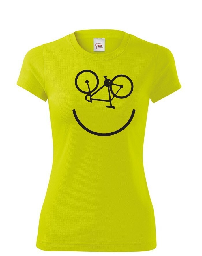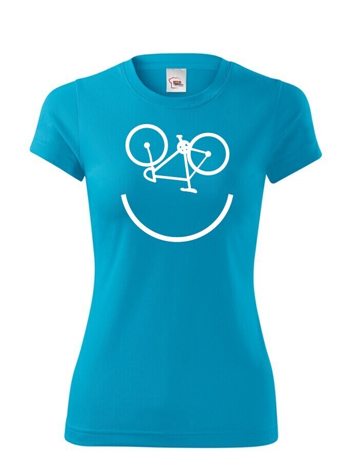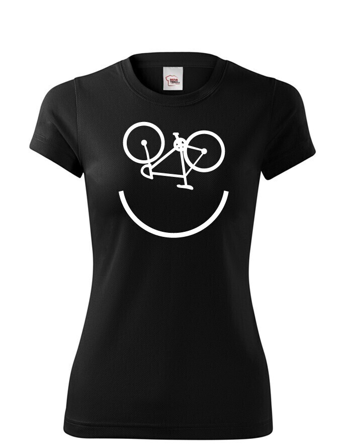 Na bicykel jedine s úsmevom! Dámske tričko pre veľkých aj malých. Cyklo úsmev vám vždy zdvihne náladu. Navyše si môžete byť istí, že tento originálny motív nikto vo vašom okolí nikto neprehliadne.
