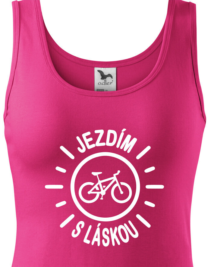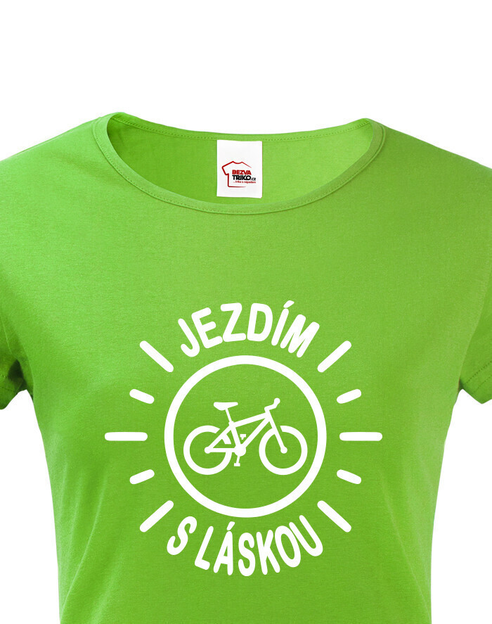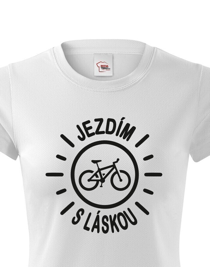 Dámske cyklistické tričko Jazdím s láskou je skvelým doplnok pre všetky milovníčky cyklistiky. Ukážte všetkým, že jazdíte rada týmto originálnym trikom s potlačou bicykla a nápisom Jazdím s láskou. Vezmite si to tričko napríklad na Váš ďalší výlet na bicykli, alebo na posedenie s priateľmi po ňom. Poznáte nejakú vášnivú cyklistku? Tričko Jazdím s láskou je skvelý darček na narodeniny alebo na Vianoce!