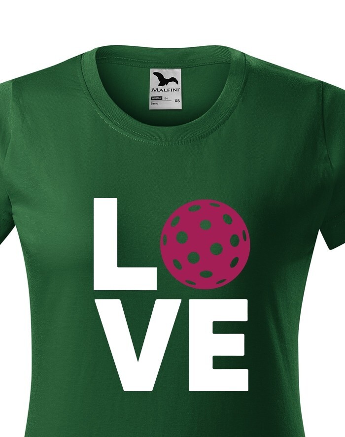 Dámske tričko s potlačou "Florbal love". Poteš akúkoľvek ženu týmto tričkom, aby vedela, že je skvelá florbalistka! Tričko sa hodí, ako na zápas, tak aj na denné nosenie. Dámske tričko urobí radosť k narodeninám, Vianociam alebo jednoducho len tak.