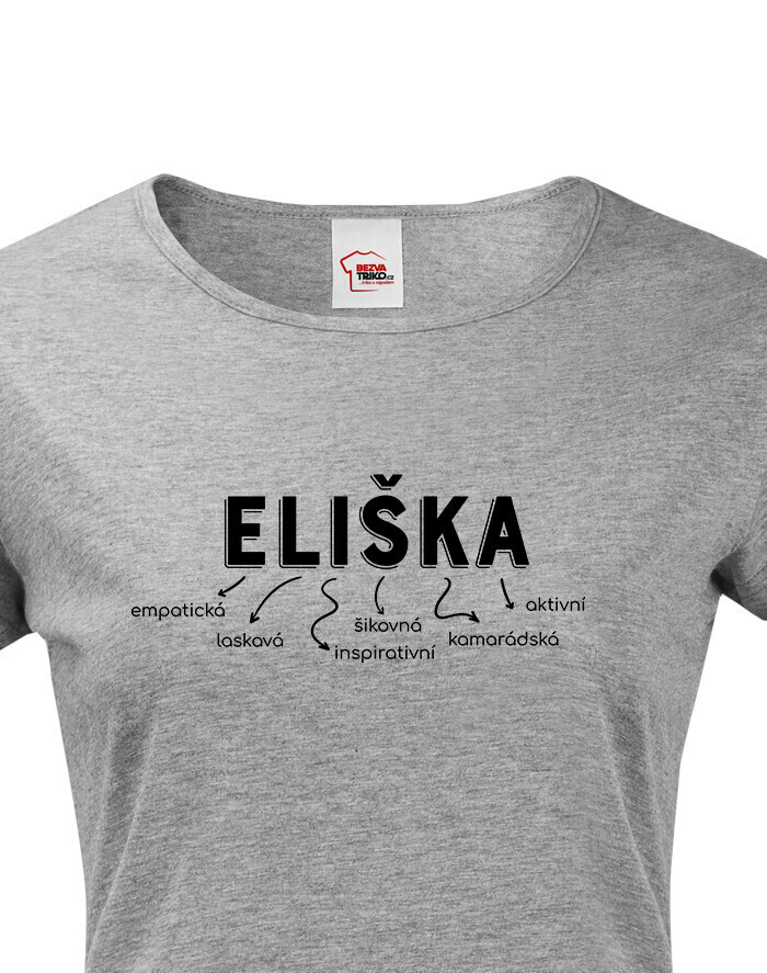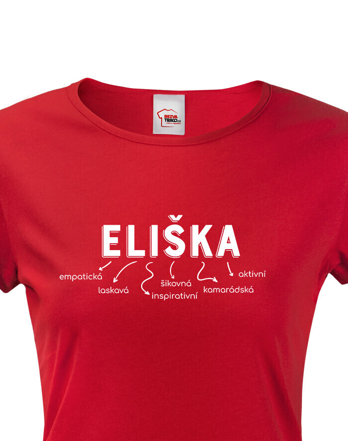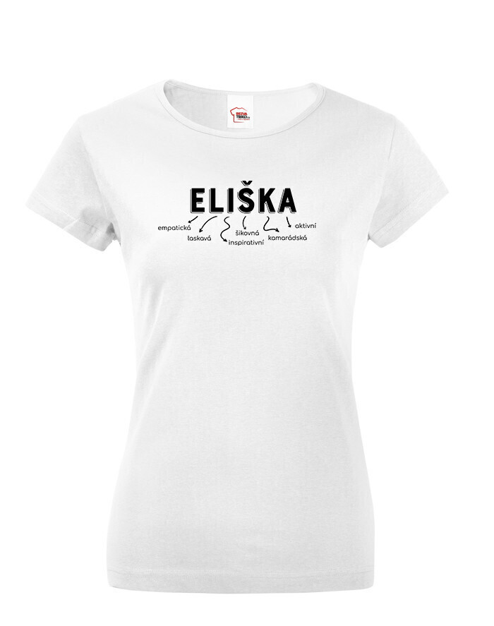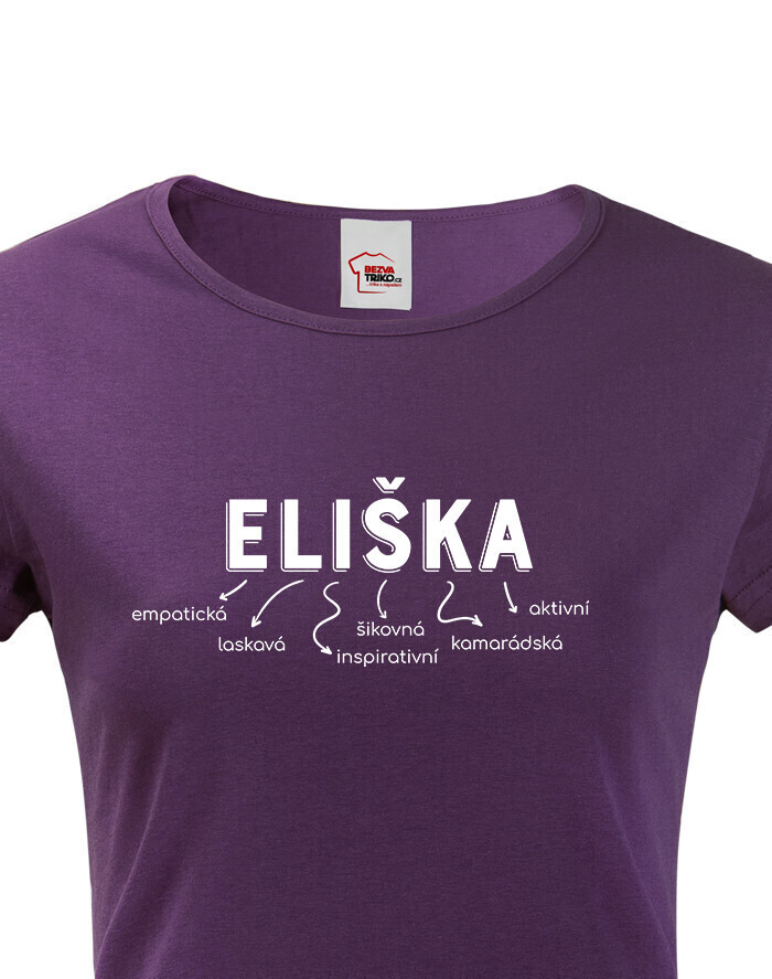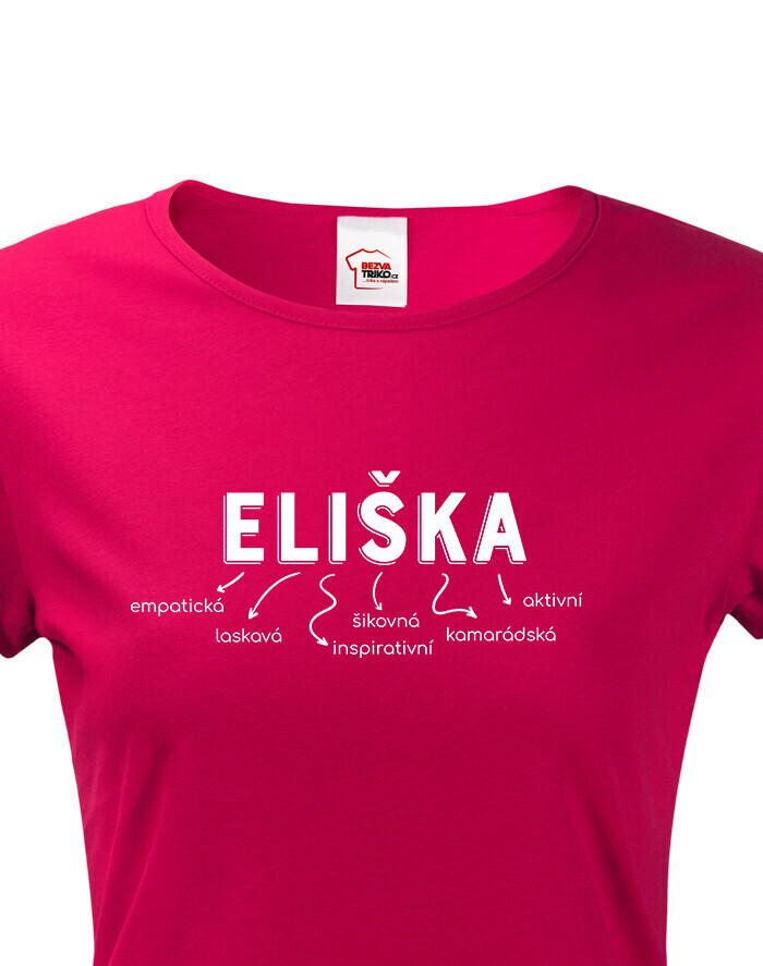 Meno Eliška vyjadruje osobnosť: empatická, láskavá, inšpiratívna, šikovná, kamarátka a aktívna. Dizajn s vlastným menom dodáva tričku jedinečný a osobitý vzhľad, ktorý určite vyčarí úsmev obdarovanej.