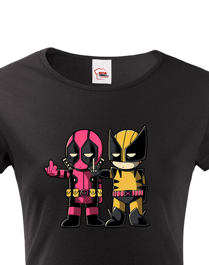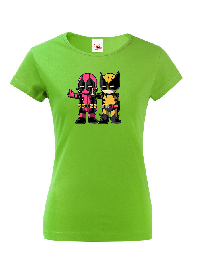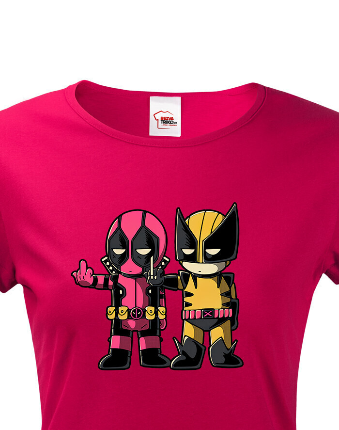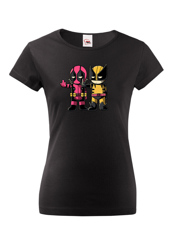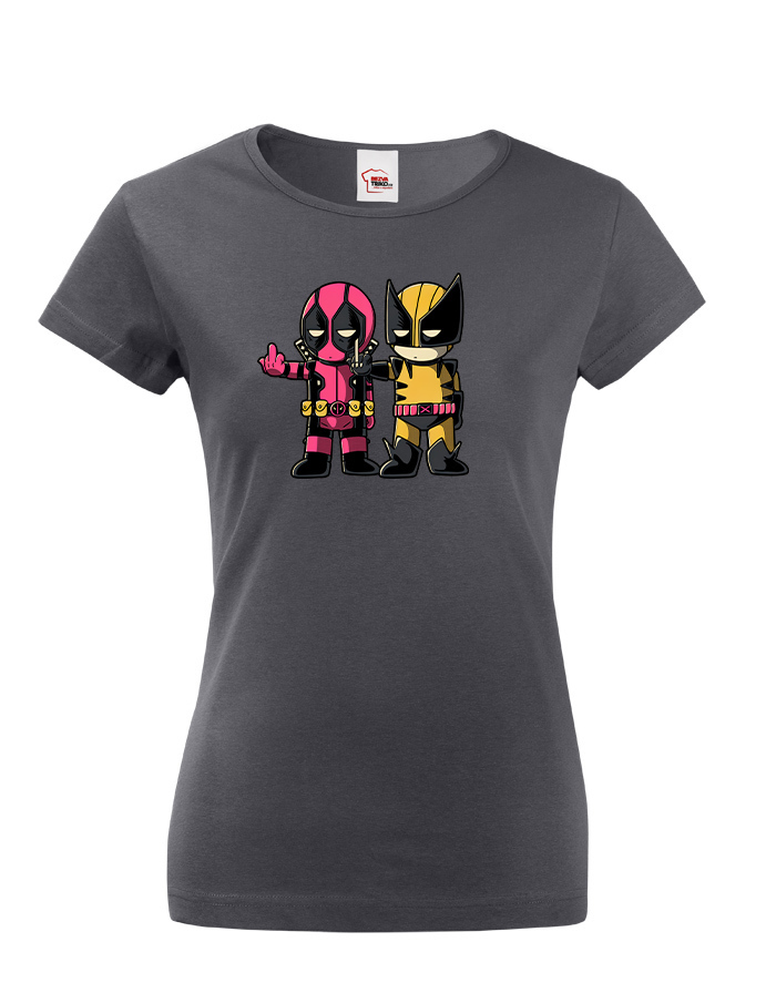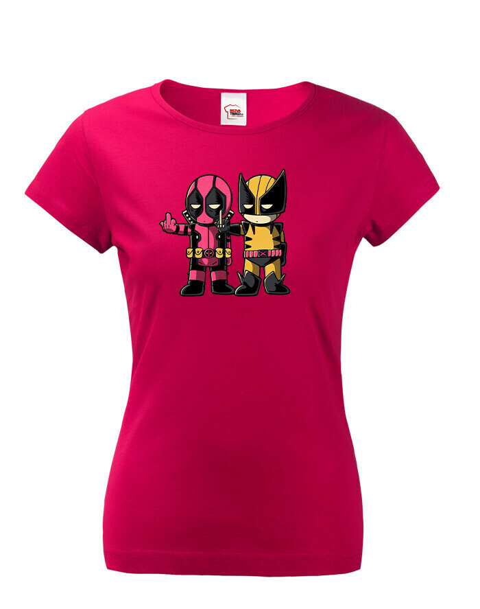 Pripravte sa na dvojitú dávku akcie a humoru s týmto dámskym tričkom, ktoré spája dve ikonické postavy Marvelu - Deadpoola a Wolverina. Štýlová potlač zachytáva ich nezabudnuteľnú dynamiku plnú vtipu, šarmu a ostrých pazúrov.