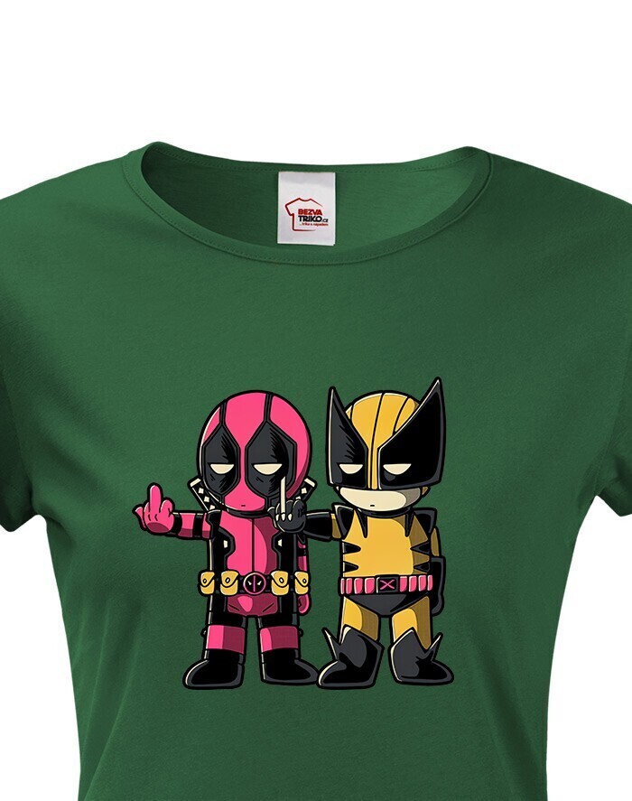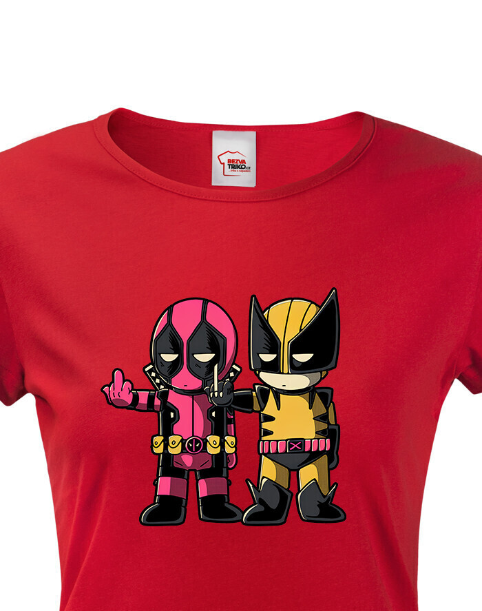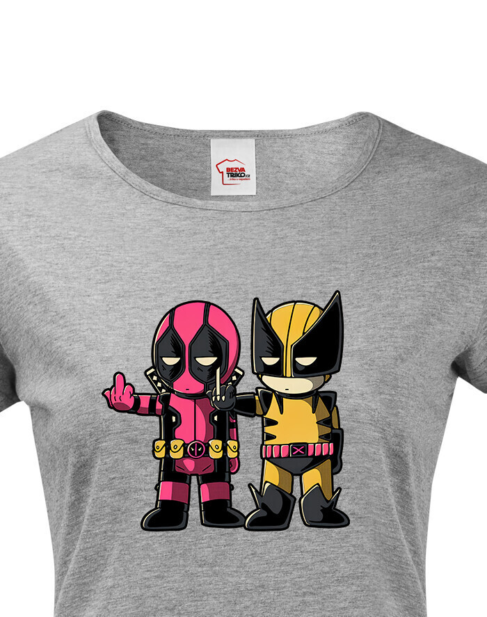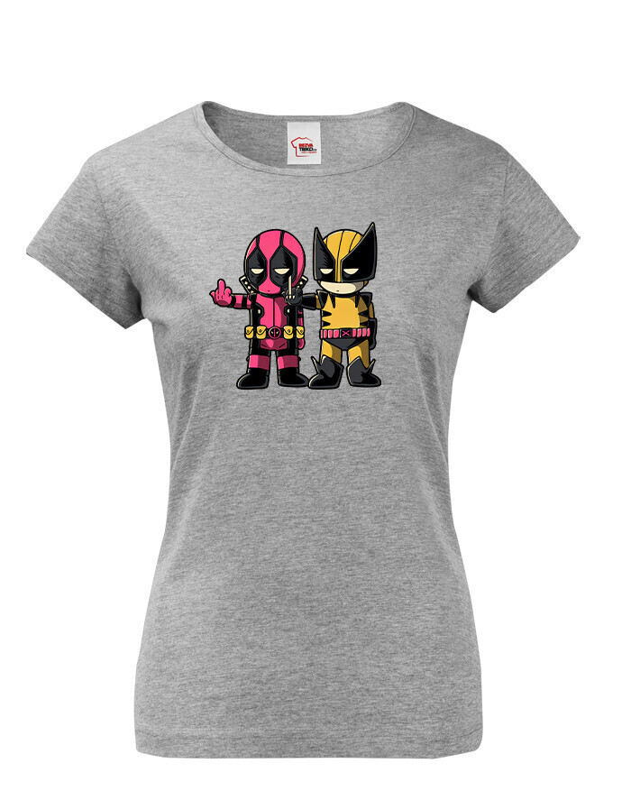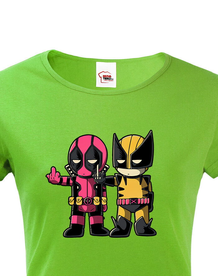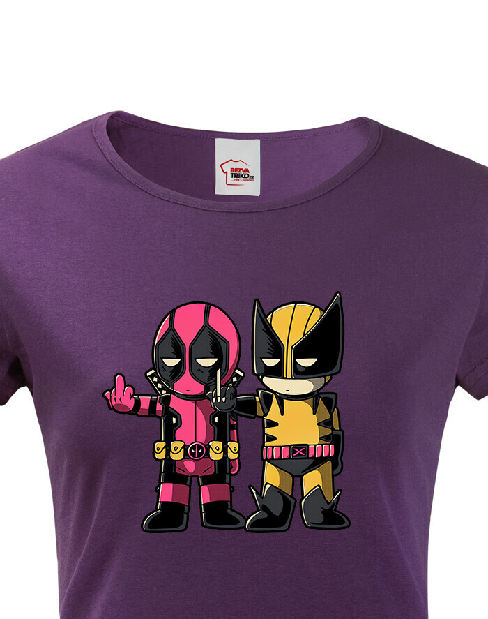 Pripravte sa na dvojitú dávku akcie a humoru s týmto dámskym tričkom, ktoré spája dve ikonické postavy Marvelu - Deadpoola a Wolverina. Štýlová potlač zachytáva ich nezabudnuteľnú dynamiku plnú vtipu, šarmu a ostrých pazúrov.