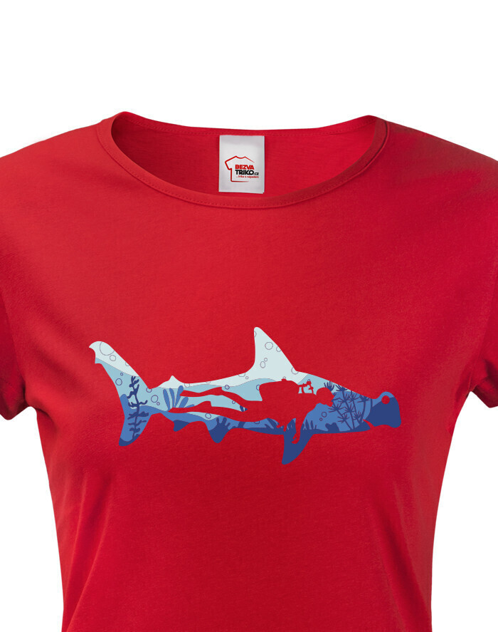 V Česku koupíte tento produkt zde: Dámské tričko Potápěč a žralok