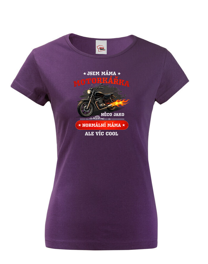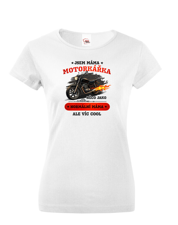 Vtipné dámské tričko pre nadšenú MAMU motorkárku, ktorá sa ničoho nebojí! Dámské tričko s potlačou "Som mama motorkárka niečo ako normálna mama ale viac cool" rozosmeje každú nadšenú motorkárku. Tento netradičný darček určite poteší každú motorkárku, ktorej adrenalín koluje v žilách. Darujte toto motorkárske tričko sebe alebo svojej mame. Radosť je zaručená. Potlač super vynikne na bielom alebo čiernom tričku, ale s inou farbou tričko určite nešlapnete veďla. Skvelý darček na Deň matiek, na narodeniny či Vianoce.