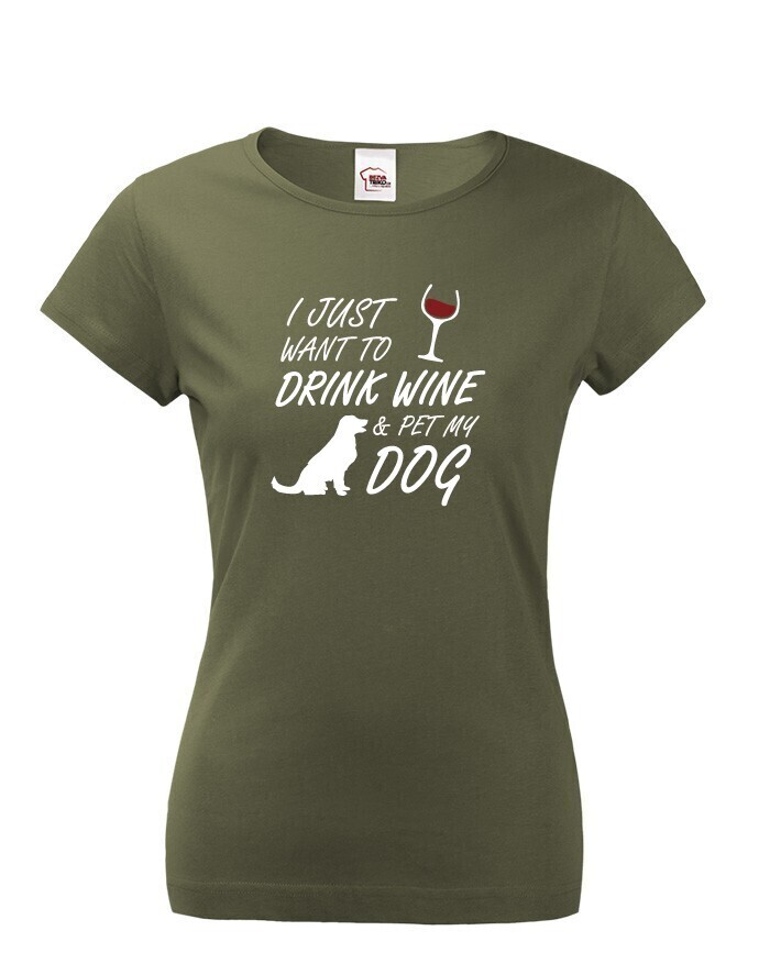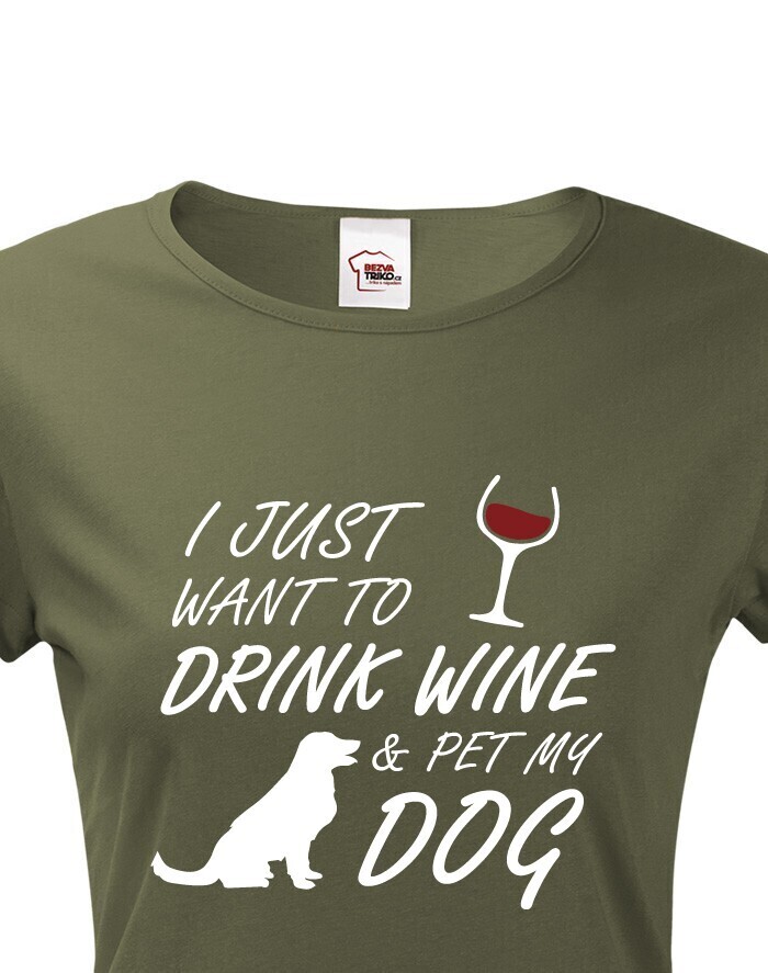 Dámské tričko s potlačou "I just want to drink wine & pet my dog" vystihuje pocity každého psíčkara. Len váš štvornohý miláčik váš vždy pochopí a zahrne nekonečnou láskou. Tričko bude ako ušité pre psíčkarov. Urob si radosť týmto tričkom s potlačou alebo daruj k narodeninám či Vianociam originálny motív.