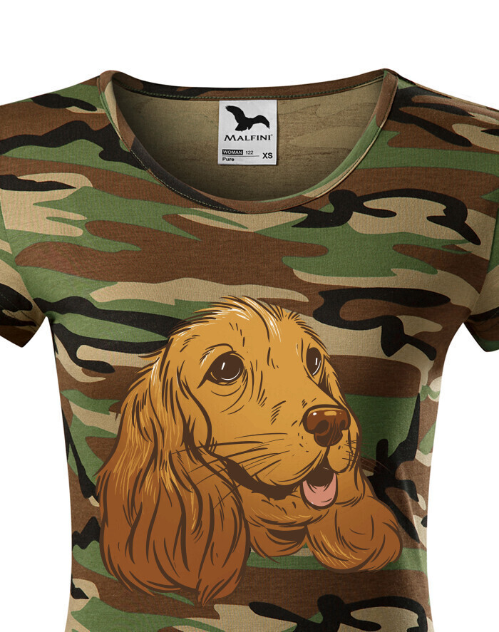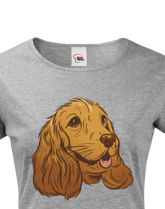 Dámské tričko s motívom kresleného kokeršpaniela vás zaručene chytí za srdce. Je vaše najobľúbenejšie plemeno Kokeršpaniel? Pokiaľ ste odpovedali áno, tak toto tričko vám určite nesmie chýbať v šatníku. Darujte ako darček na narodeniny, Vianoce alebo jednoducho len tak - pre potešenie a pre radosť.
