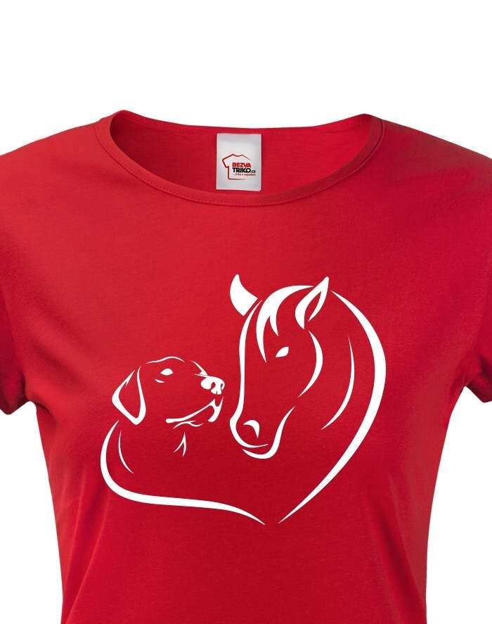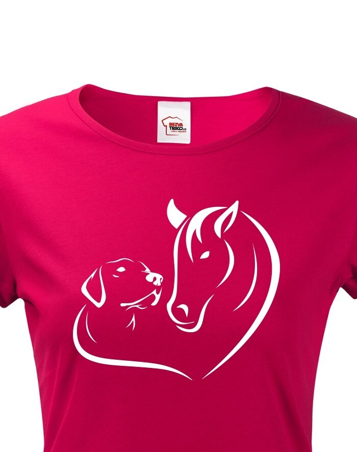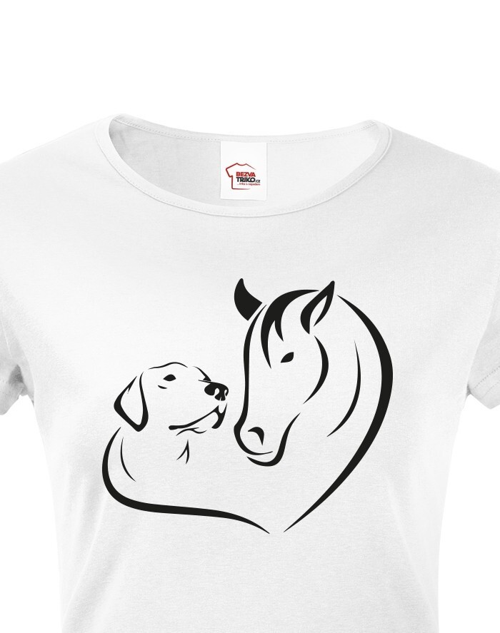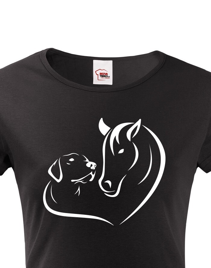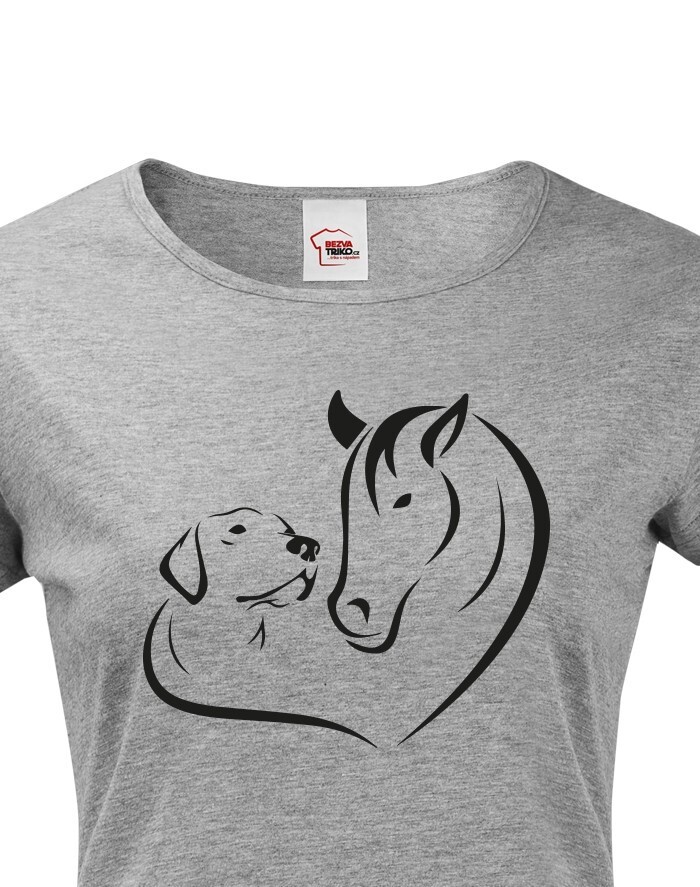 Dámské tričko zobrazujúce neskutočnú lásku k zvieratám. Tričko s potlačou koňa a psa zobrazuje puto, ktoré máte k zvieratám. Si dievča, pre ktoré zvieratá znamenajú všetko? Je jasná vec, že najkrajší pohľad na svet je zo sedla koňa. Tričko stvorené pre dámy, ktoré milujú jazdenie a sú psíčkarky telom aj dušou. Tričko sa skvele hodí ako darček na narodeniny, meniny, Vianoce alebo len tak pre potešenie :)