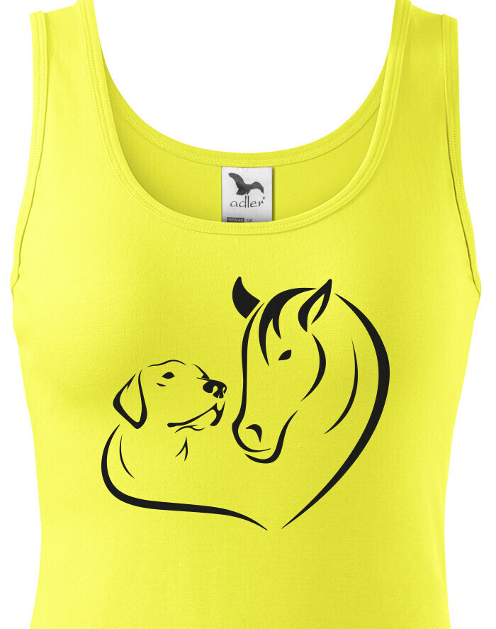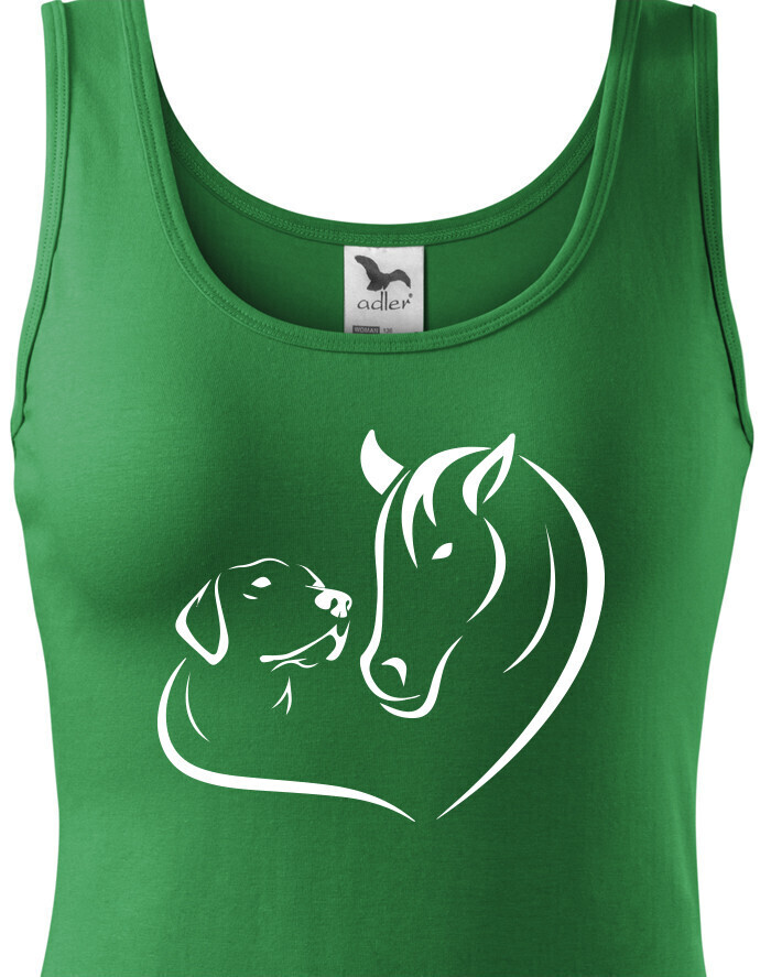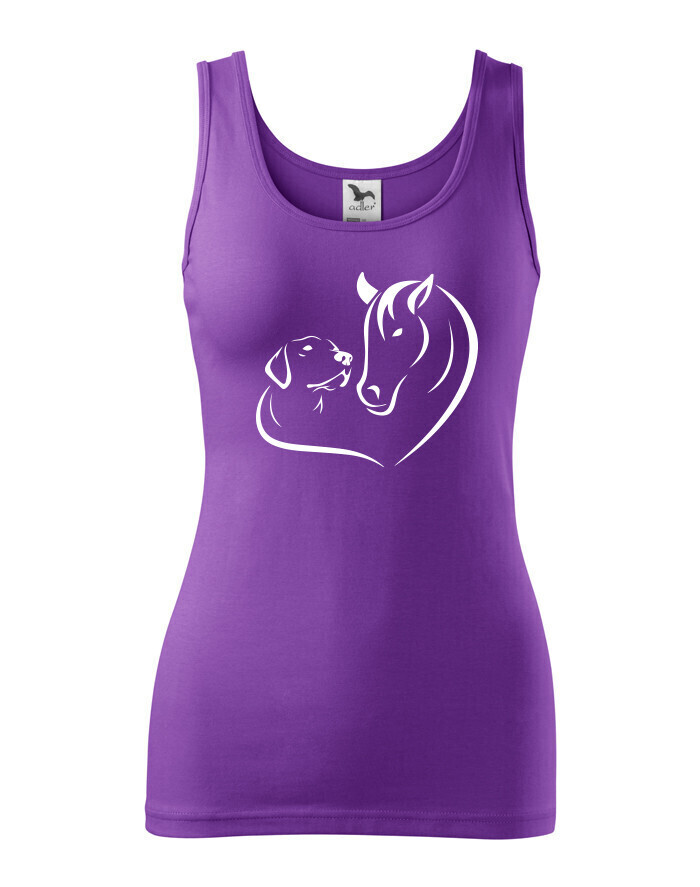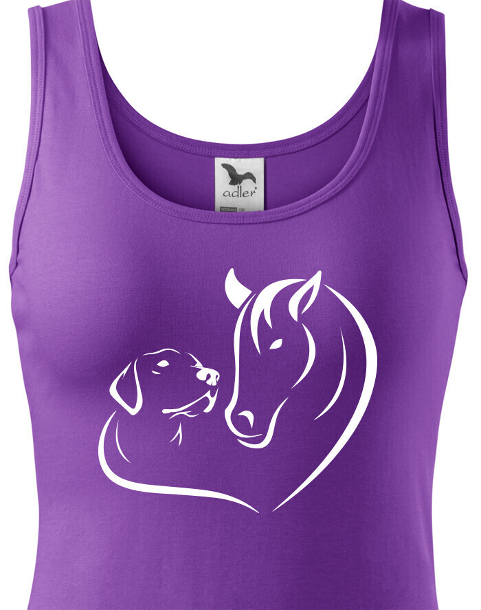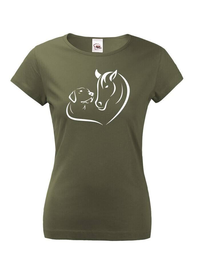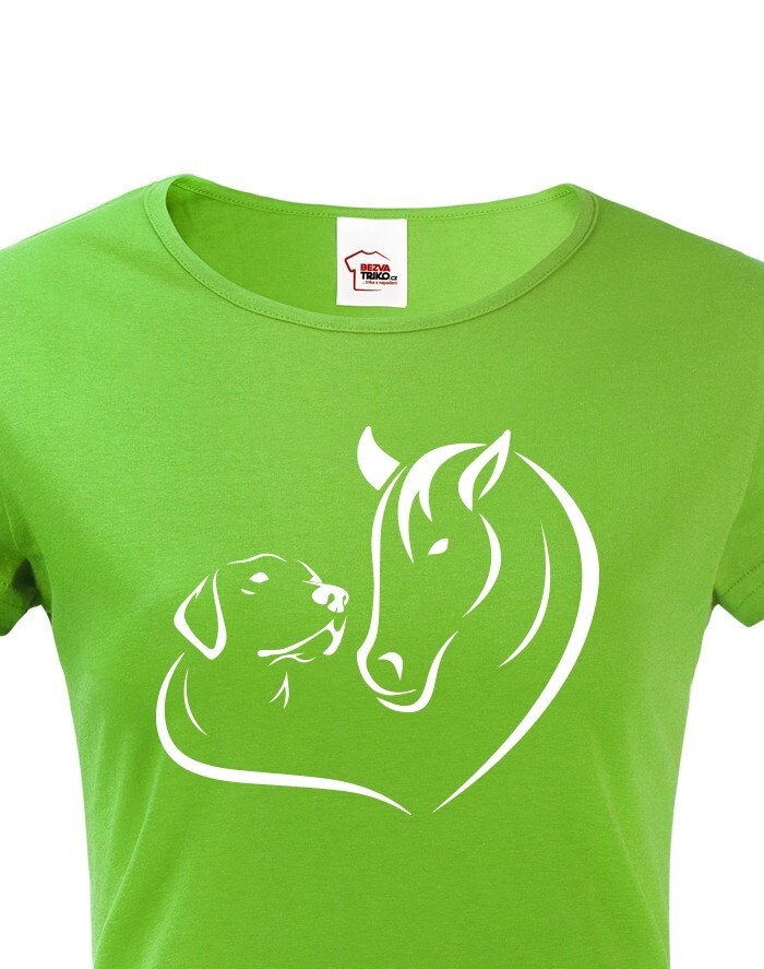 Dámské tričko zobrazujúce neskutočnú lásku k zvieratám. Tričko s potlačou koňa a psa zobrazuje puto, ktoré máte k zvieratám. Si dievča, pre ktoré zvieratá znamenajú všetko? Je jasná vec, že najkrajší pohľad na svet je zo sedla koňa. Tričko stvorené pre dámy, ktoré milujú jazdenie a sú psíčkarky telom aj dušou. Tričko sa skvele hodí ako darček na narodeniny, meniny, Vianoce alebo len tak pre potešenie :)