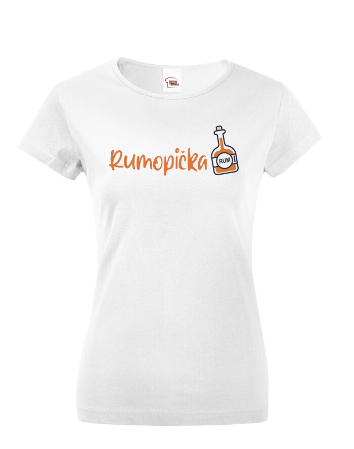 Dámské tričko, ktoré musí mať každá milovníčka RUMU. Vtipné a originálné dámské tričko s vtipným nápisom Rumopička zaručene poteší milovníčka RUMU. Toto tričko povie všetko za vás. Už nebude musieť nikomu vysvetlovať, ktorý alkoholický nápoj je váš najobľúbenejší. Perfektné tričko, ktoré dostane každého. Zabudnite nato, že len chlapi majú radi RUM. Milovníčky RUMU sú aj ženy. Tričko sa perfektne hodí na každú poriadnu dámsku jazdu. Skvelý narodeninový alebo vianočný darček. Potlač perfektne vynikne na bielom alebo čiernom tričku, ale vedľa nešliapnete ani s inou farebnou variantou. Obdarujte seba alebo svojích blízkych.