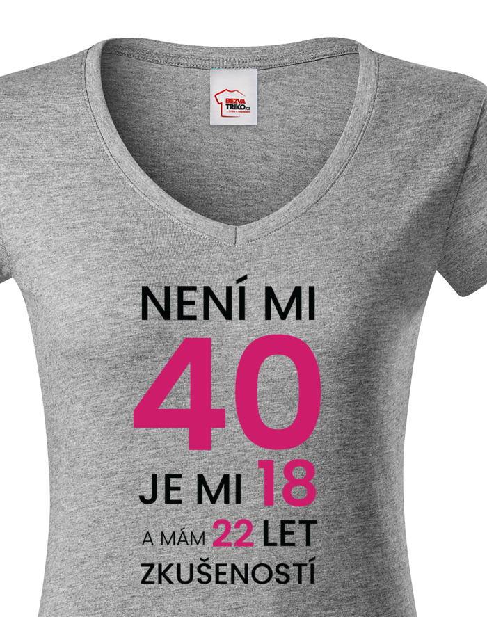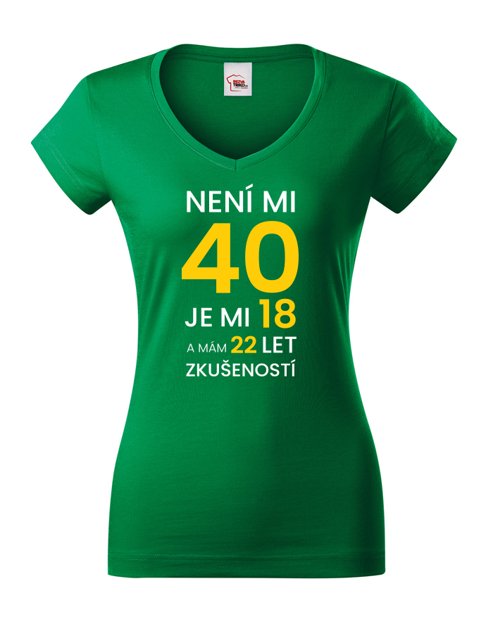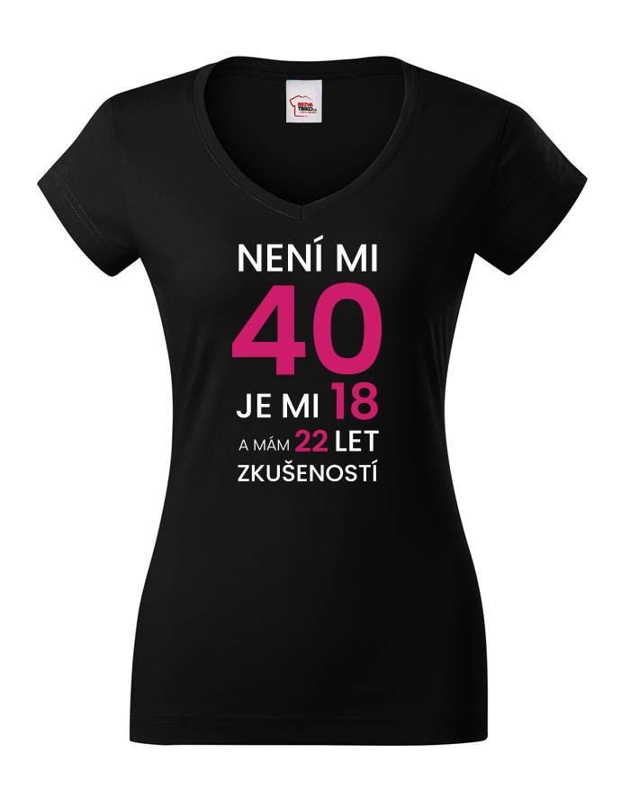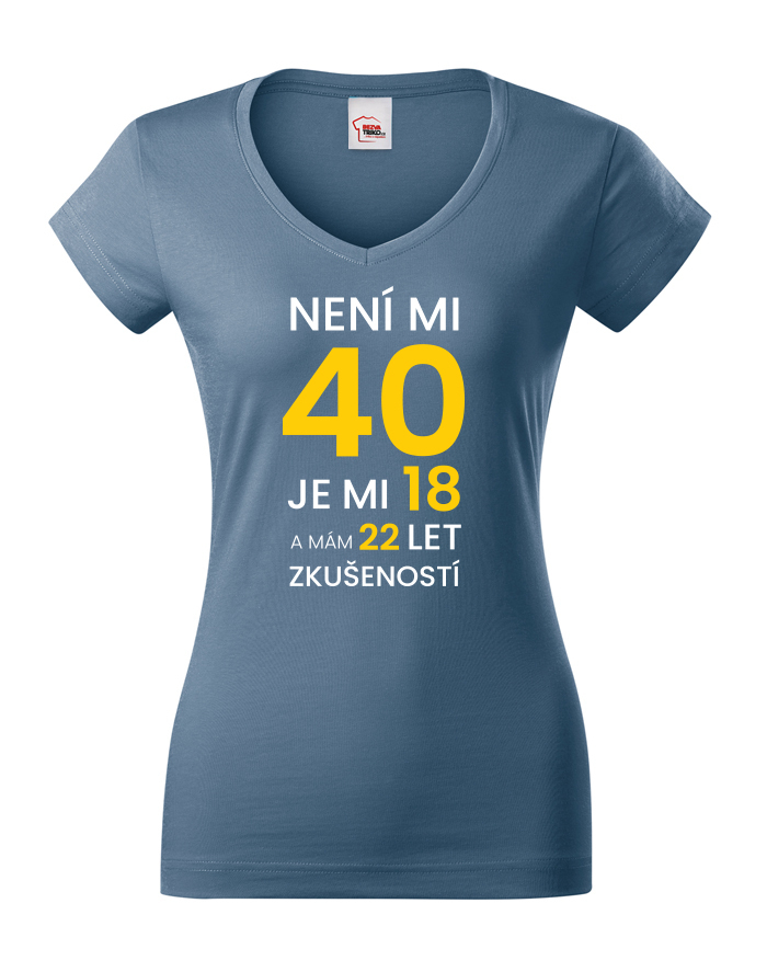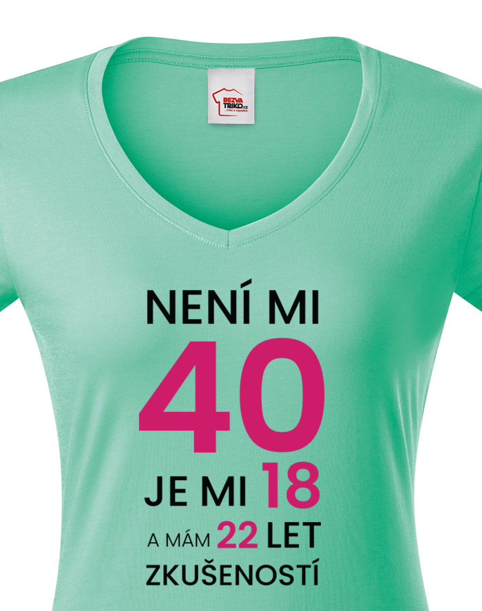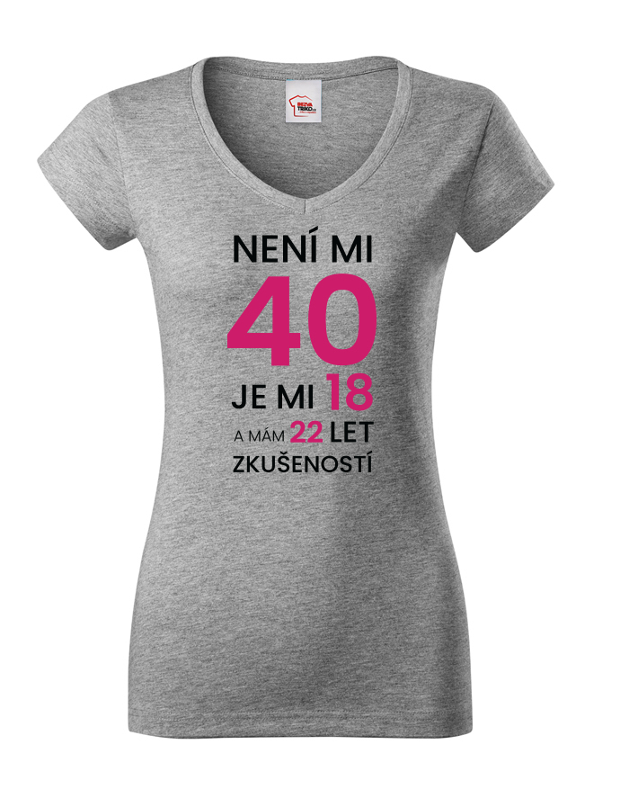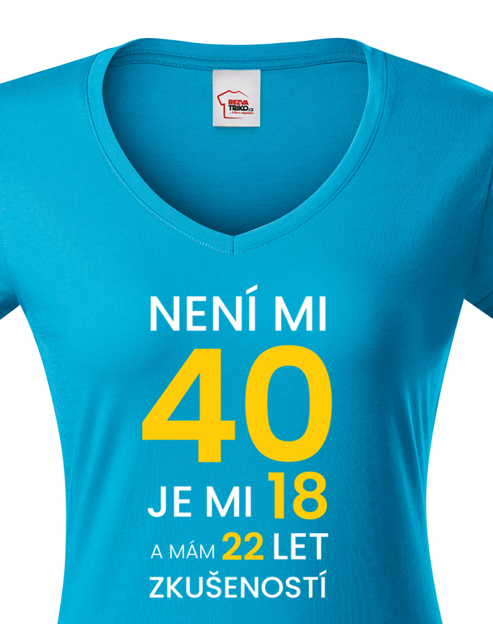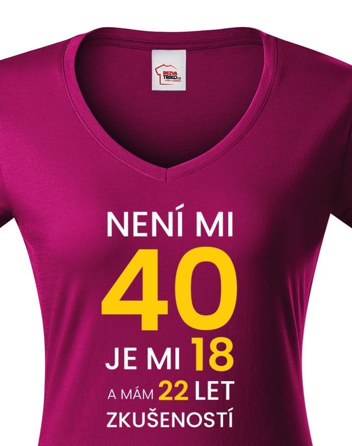 Dámské narodeninové tričko s potlačou k 40. narodeninám "Nie je mi 40 je mi 18 a mám 22 rokov skúseností" rozosmeje každého, kto si potlač prečíta. Veď predsa vek nie je žiadna hanba. Tričko pre oslávenca okrúhlych narodenín - pre všetkých, ktorí chcú v 40. rokov vyzerať naozaj cool! Tričko sa ideálne hodí ako darček na narodeniny pre mamu, sestru či tetu.