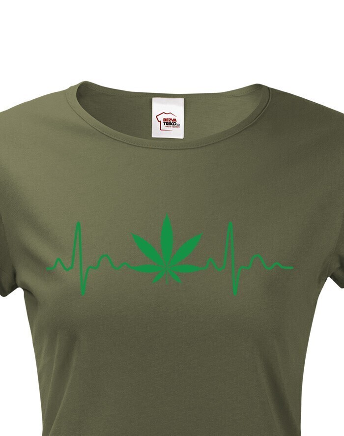 Dámské tričko s potlačou marihuany a pulzu. S tričkom vyniknete pomedzi ostatných. Tričko bude skvelé ako darček pre všetkých, ktorí radi vidia svet v lepších farbách. Nebuď ako ostatní a nahoď si toto cool tričko na seba.