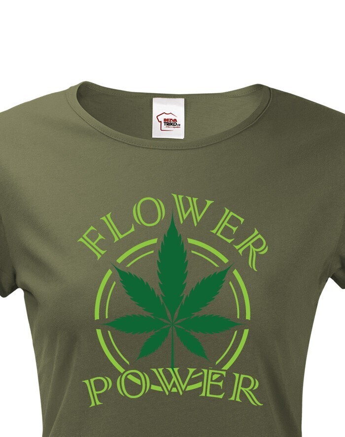 Dámské tričko s vtipnou potlačou "Flower power". Dajte všetkým najavo, čo vám dobíja baterky. Tričko bude skvelým darčekom pre všetkých, ktorý radi vidia svet v lepších farbách.
