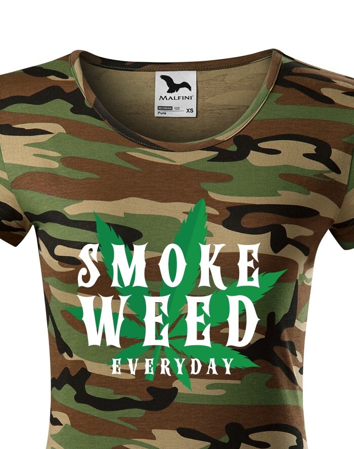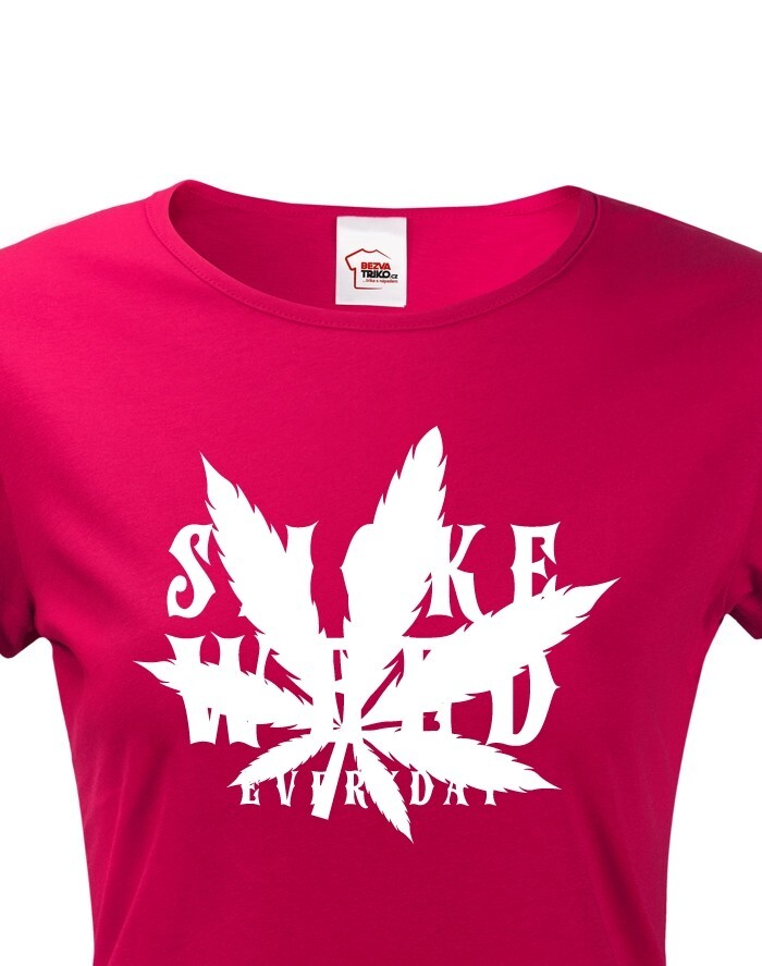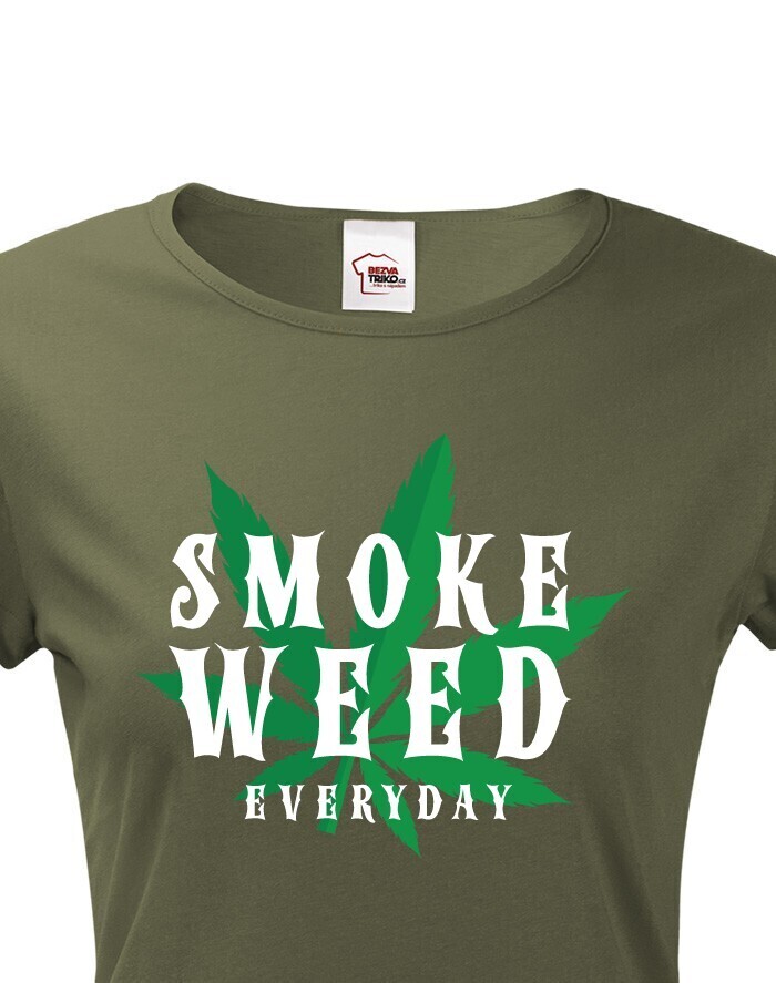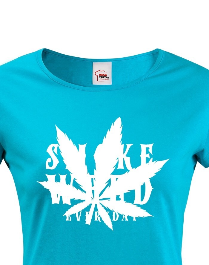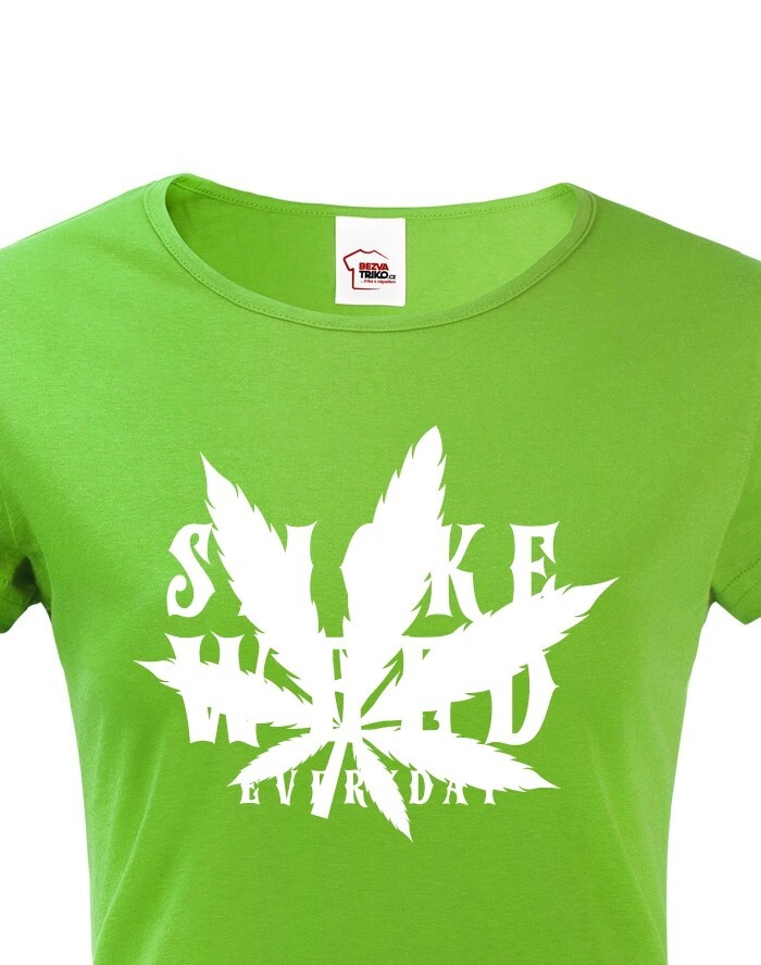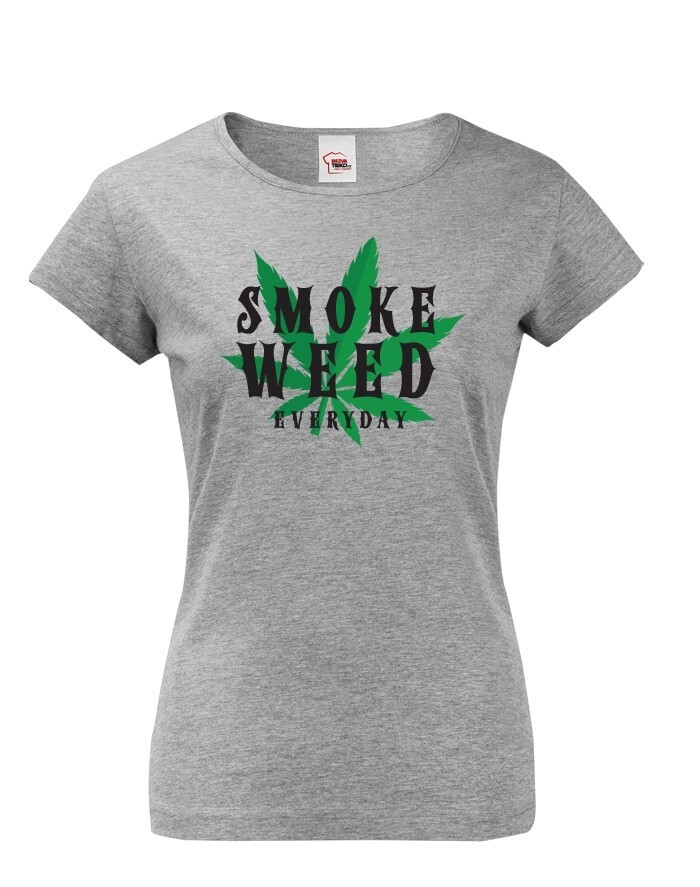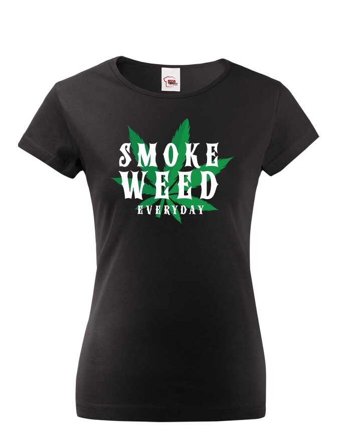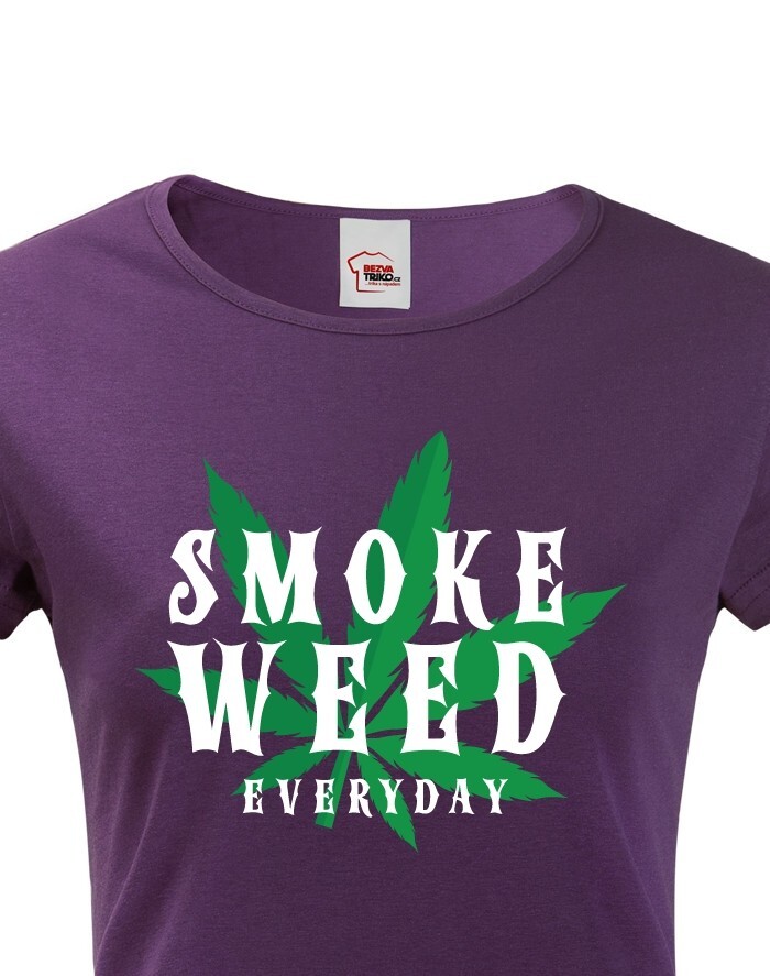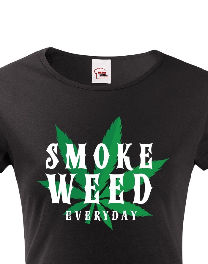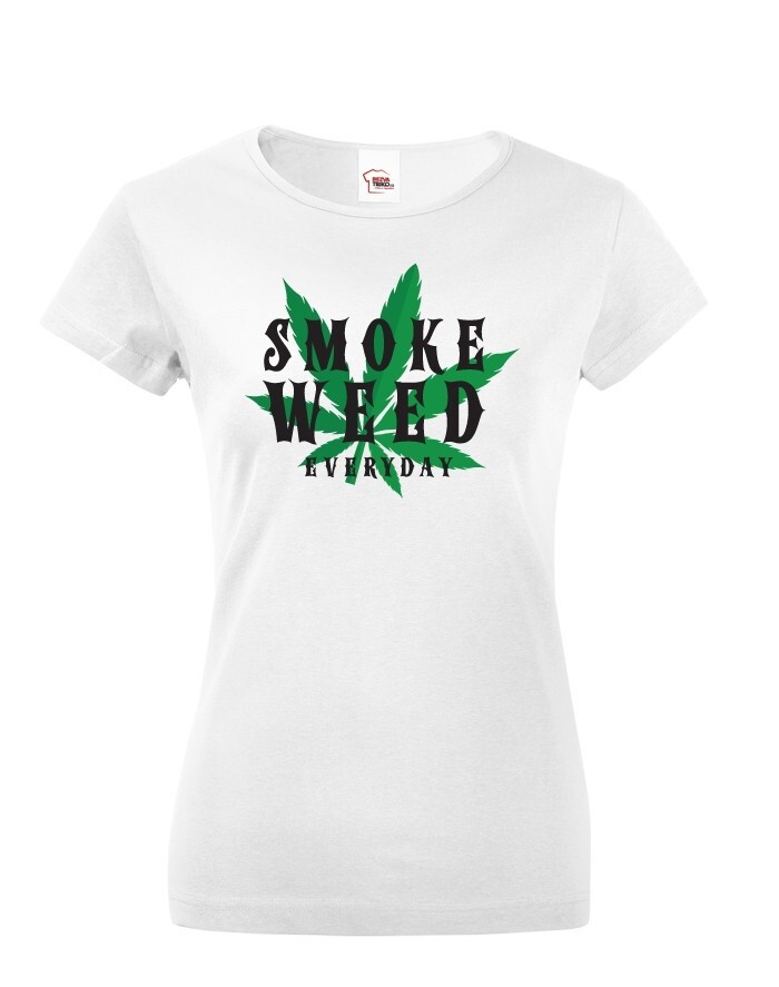 Jednoduché dámské tričko s vystihujúcim nápisom "Smoke weed everyday". Dajte všetkým najavo, čo vám dobíja baterky. Tričko bude skvelým darčekom pre všetkých, ktorý radi vidia svet v lepších farbách.