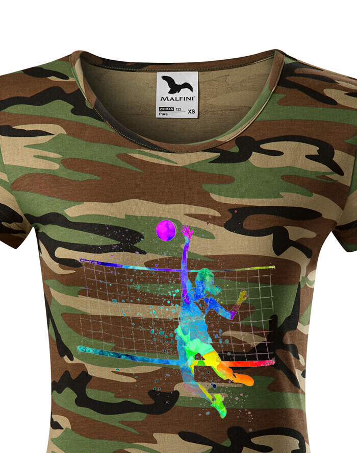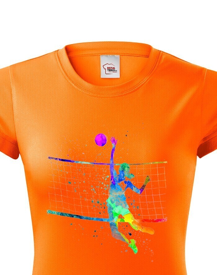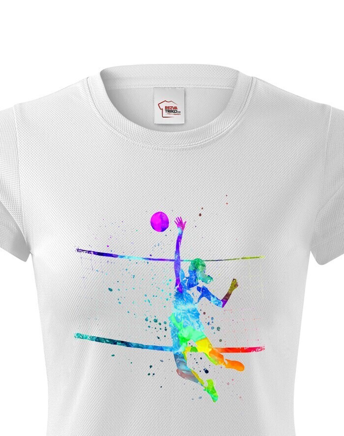 Dámské volejbalové tričko s potlačou siluety volejbalistu a lopty zaručene poteší každú volejbalistku. Rád hráš volejbal? Tak potom toto tričko je to pravé pre vás. Dámské tričko sa skvelo hodí na tréningy, na zápasy ale aj na každodenné nosenie ako napríklad do práce alebo von s priateľmi. Máte vo svojom okolí nadšenú volejbalistku? Pokiaľ áno, tak toto tričko je skvelým darčekom na narodeniny alebo Vianoce.
