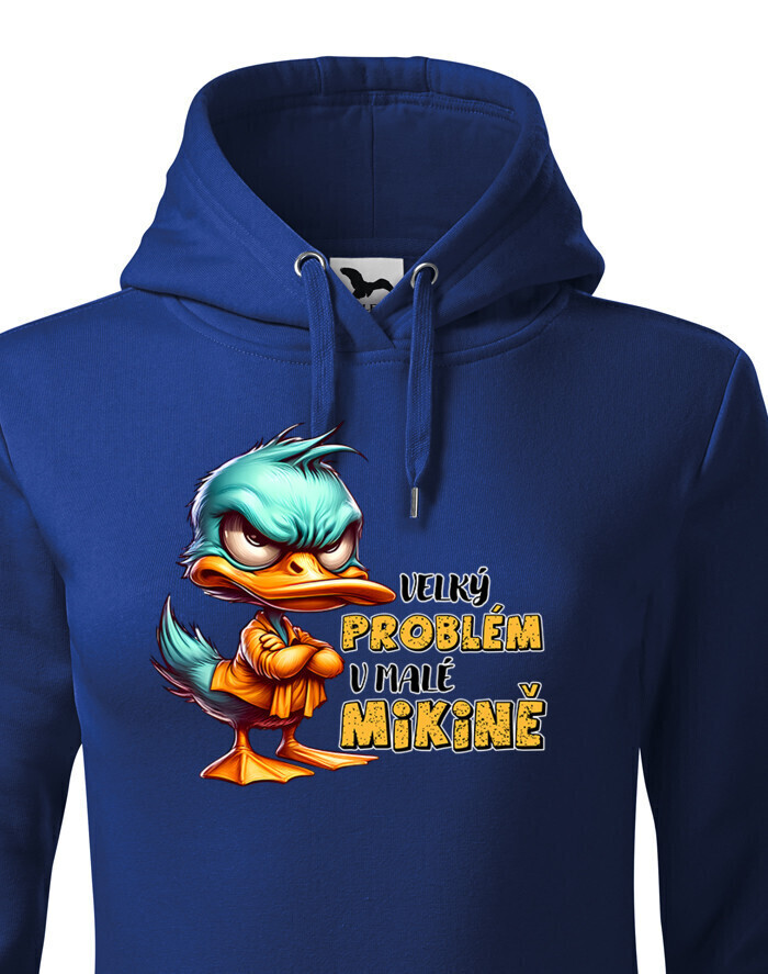 Představujeme vám dámskou mikinu, která kombinuje hravost a styl v jednom! Tato mikina s veselým motivem kačera a výrazným nápisem "Velký problém v malé mikině" je ideální volbou pro všechny rebely. S jasnými barvami a zábavným designem se rychle stane oblíbeným kouskem ve vašem šatníku Mikina je vyrobena z měkkého a prodyšného materiálu, který zajišťuje maximální pohodlí při nošení, ať už jde o běžné denní nošení. Díky praktickému a pružnému lemu zůstane na místě a bude držet teplo i v chladnějších dnech.