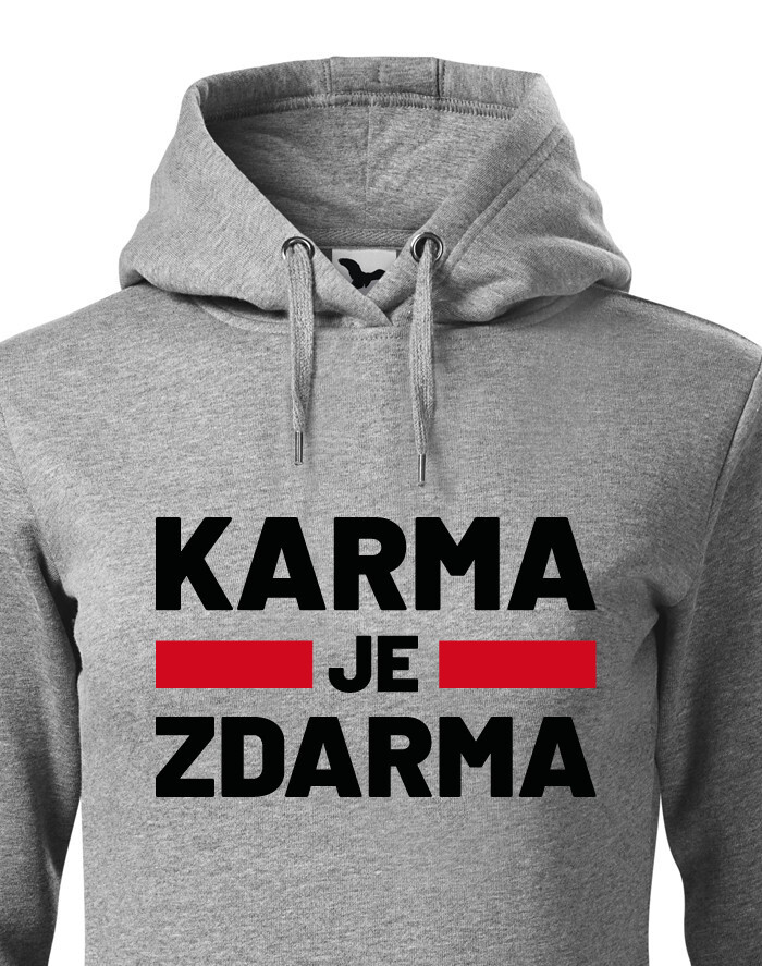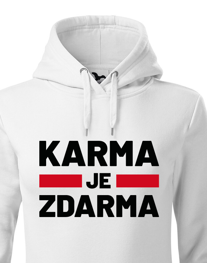 Karma je zdarma. Táto obľúbená hláška si našla cestu aj na našu mikinu s potlačou. Ak veríte na karmu, tak táto mikina bude jasnou voľbou. Vezmi mikinu do školy alebo do práce, a ukáž všetkým, že pokiaľ Ťa niekto pravidelne štartuje, karma mu to iste vráti.
