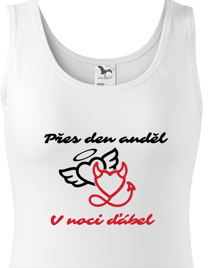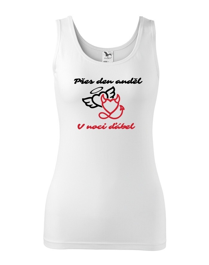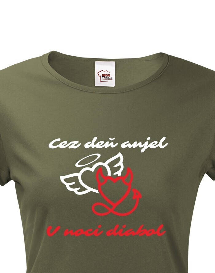 V Česku koupíte tento produkt zde: Dámské tričko přes den anděl, v noci ďábel