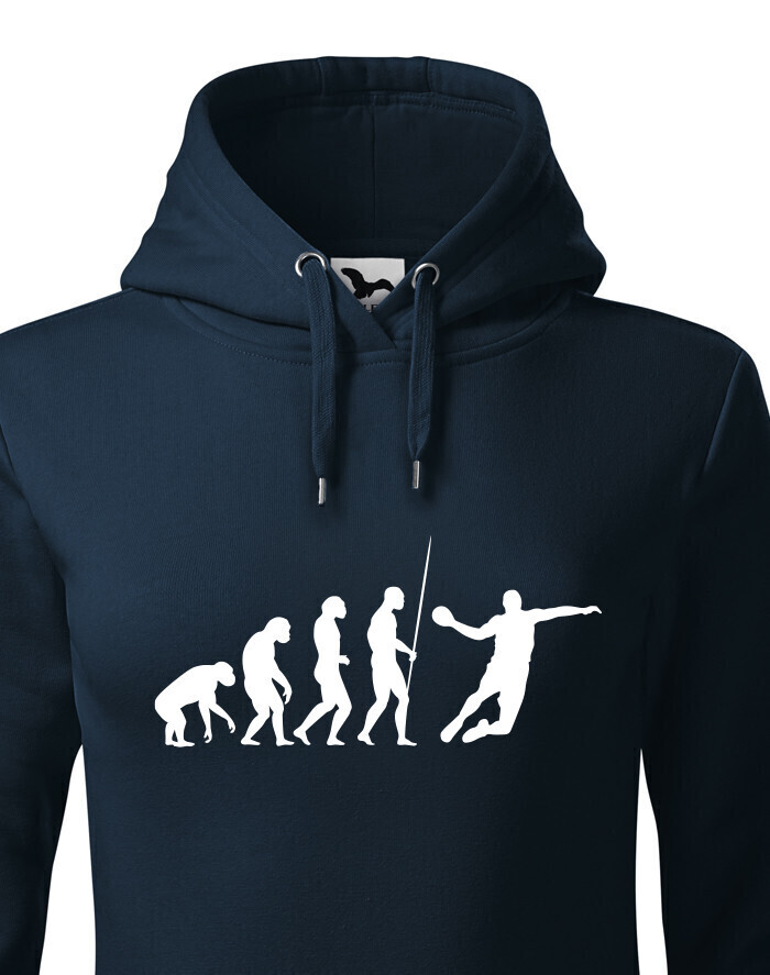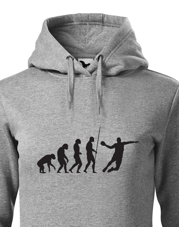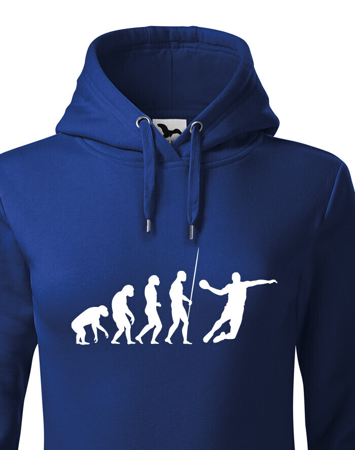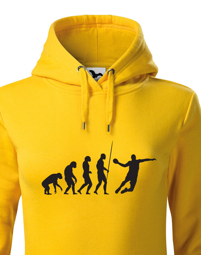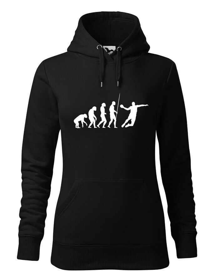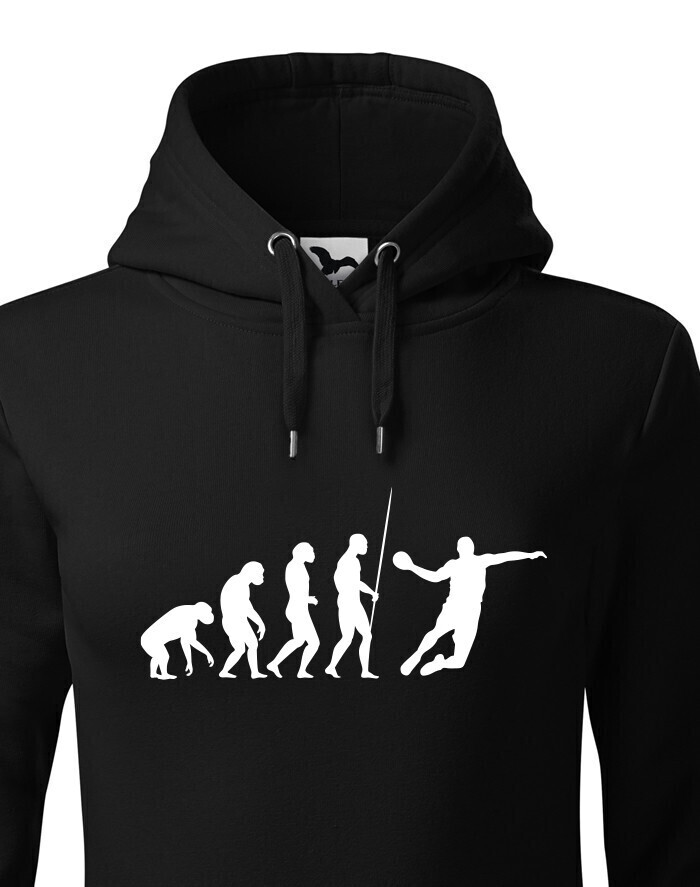 Dámská mikina s potiskem Evoluce - házená je pro všechny, kteří se vyvinuli do hráče v házené. V této mikině budete za hvězdu. Ukažte všem že máte rádi házenou tímto nebo jiným kouskem z naší nabídky. Mikina je ideální a vtipný dárek k narozeninám či Vánocům.