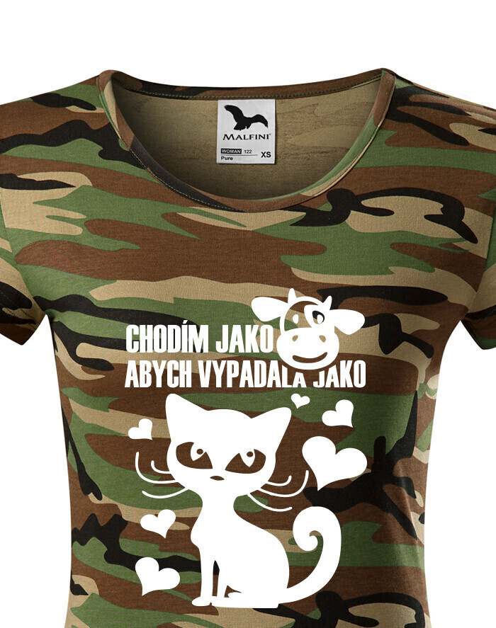 Veľa chodíte? Potom je toto originálne dámske tričko Chodím ako krava aby som vyzerala ako kočka tým pravým tričkom pre Vás! Na tričku sú originálne a vtipne zobrazené zvieratká, ktoré zastupujú svoje miesto v tomto nápise. Tričko bude skvelým doplnkom na cesty, ale aj do práce, obzvlášť, pokiaľ sa v práci veľa nachodíte. Tričko je skvelým darčekom či už pre tých, ktorí chodia pre radosť, alebo pre tých, čo stále nadávajú, ako sa dnes v práci nachodili sem tam.