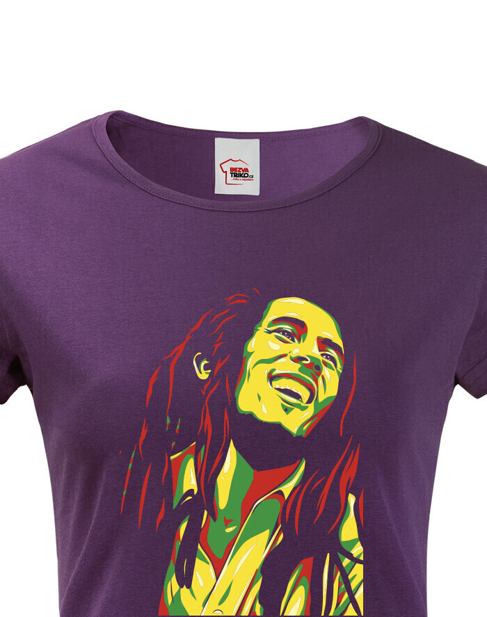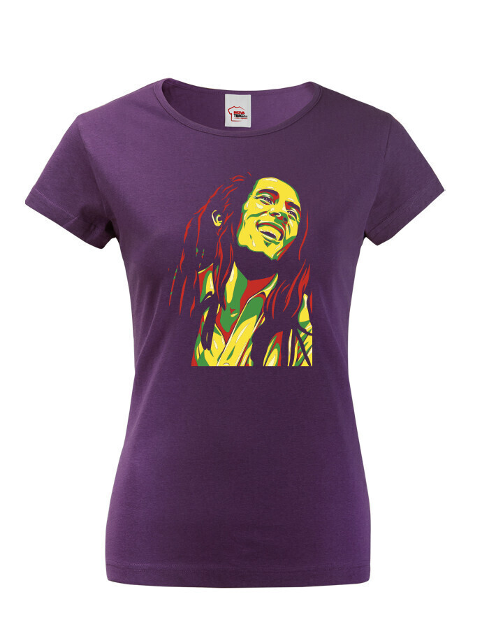 Máte radi reggae? Potom Vám určite nesmie chýbať toto dámské tričko s Bobom Marleym! Bob Marley je legendárna ikona reggae, rastafariánov, ale aj celej Jamajky. Poznáte nejakú milovníčku reggae a Boba Marleyho? Urobte jej radosť týmto hudobným tričkom! Na tričku je tvár Boba Marleyho vystylizovaná vo farbách Jamajskej vlajky. Toto tričko je skvelé na bežné nosenie, či už do práce, na posedenie s kamarátmi, ale aj kamkoľvek inam. Týmto tričkom nemôžete nikdy šliapnuť vedľa. Táto potlač skvele vynikne na čiernom tričku, ale rovnako tak bude vyzerať dobre aj na bielom alebo farebnom.