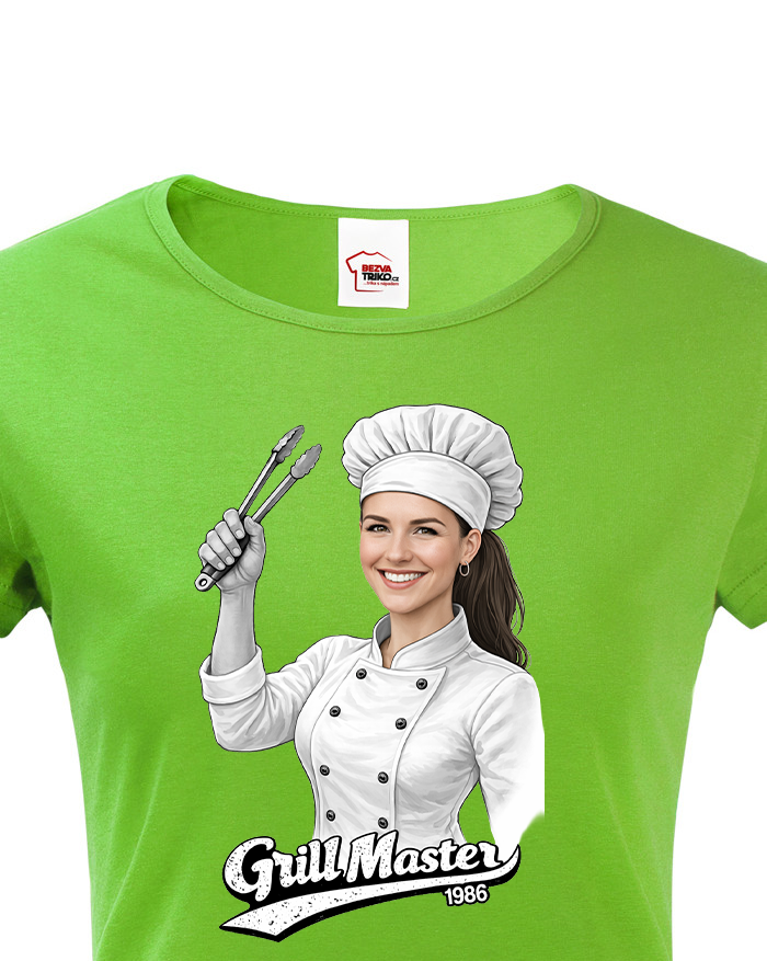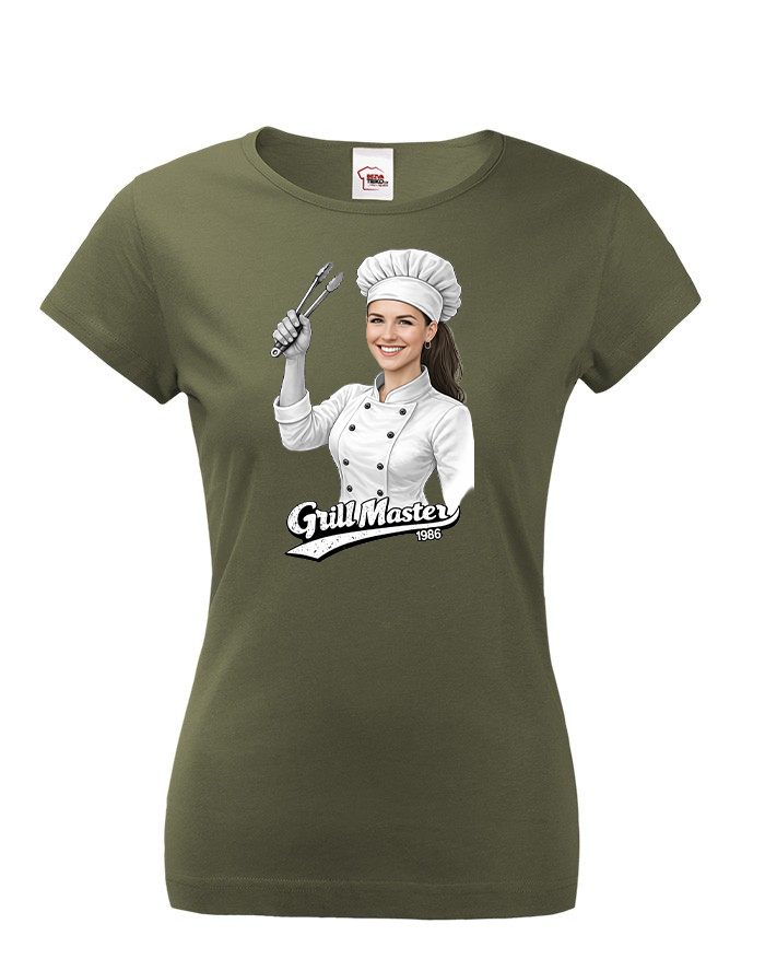 Toto originálne dámske tričko s potlačou kuchárky a nápisom Grill Master je ideálnou voľbou pre každú ženu, ktorá miluje grilovanie, dobré jedlo a zábavu. Vďaka možnosti upraviť tvár kuchárky podľa vlastnej fotografie sa z trička stáva skutočne osobný a jedinečný kúsok. Navyše si môžete zvoliť ľubovoľný vek, ktorý bude na tričku uvedený, čo z neho robí perfektný darček na mieru.