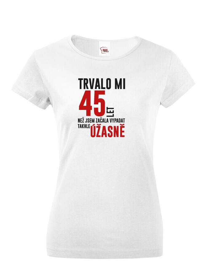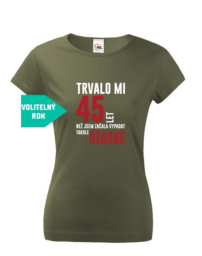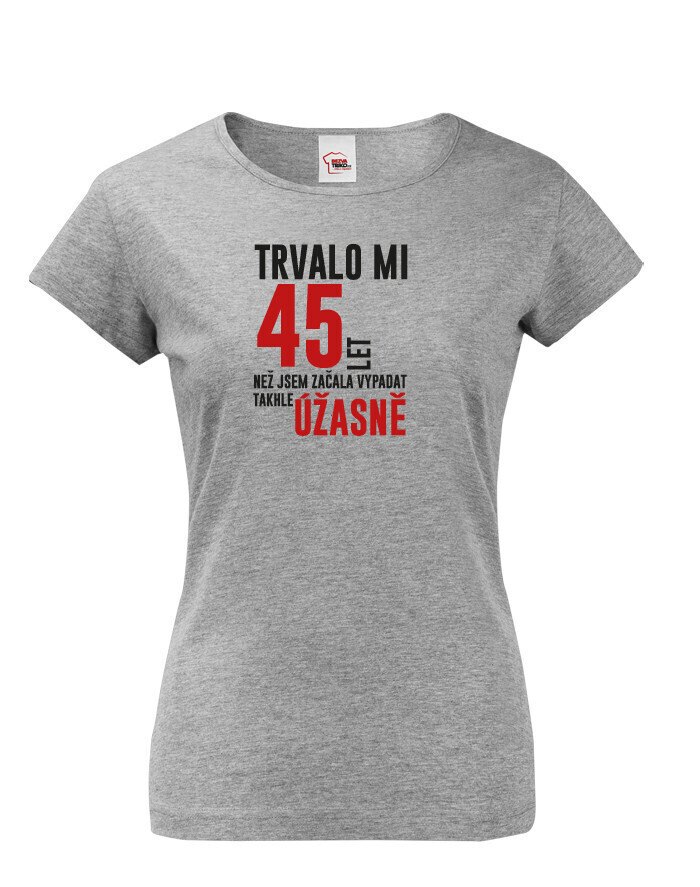 Dámske tričko k narodeninám "Trvalo XX rokov kým som začala vyzerať takto skvele" bude skvelým darčekom k narodením pre mamičku, babičku alebo sestru! Nezabudnite nám napísať do poznámky vek, ktorý budeme na tričko tlačiť.
