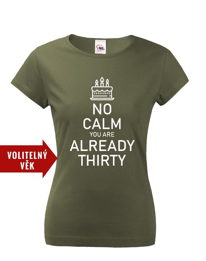 Dámske tričko s potlačou NO CALM YOU ARE ALREADY "Váš vek" bude ideálnym narodeninovým darčekom. Nezabudnite nám do poznámky doplniť vek, ktorý budeme tlačiť na tričko. Tričko vtipne popichne a rozosmeje. Tričko NO CALM hovorí, že je trochu čas na paniku, lebo je tu zas ďalší rok naviac. ;-)