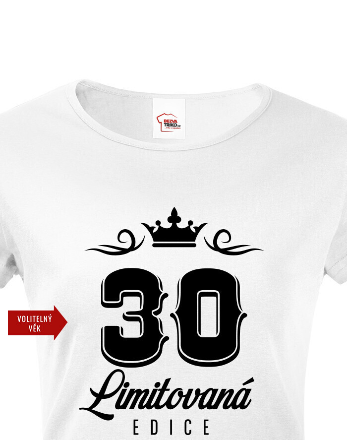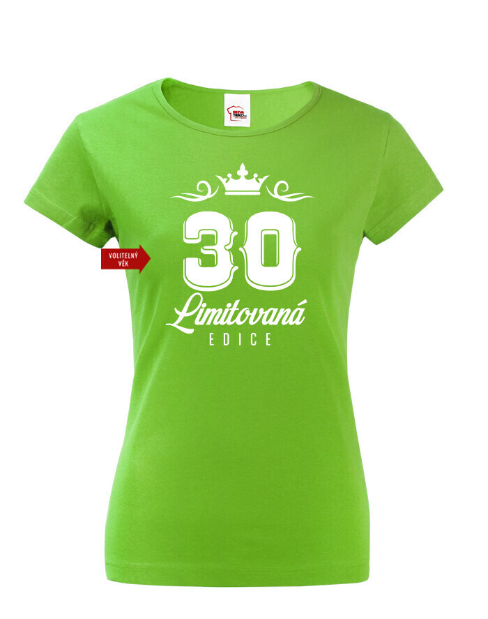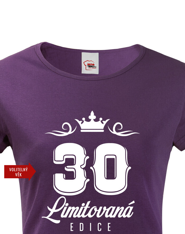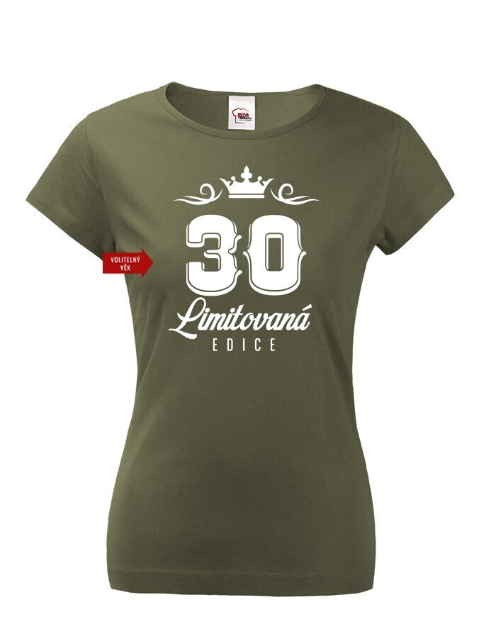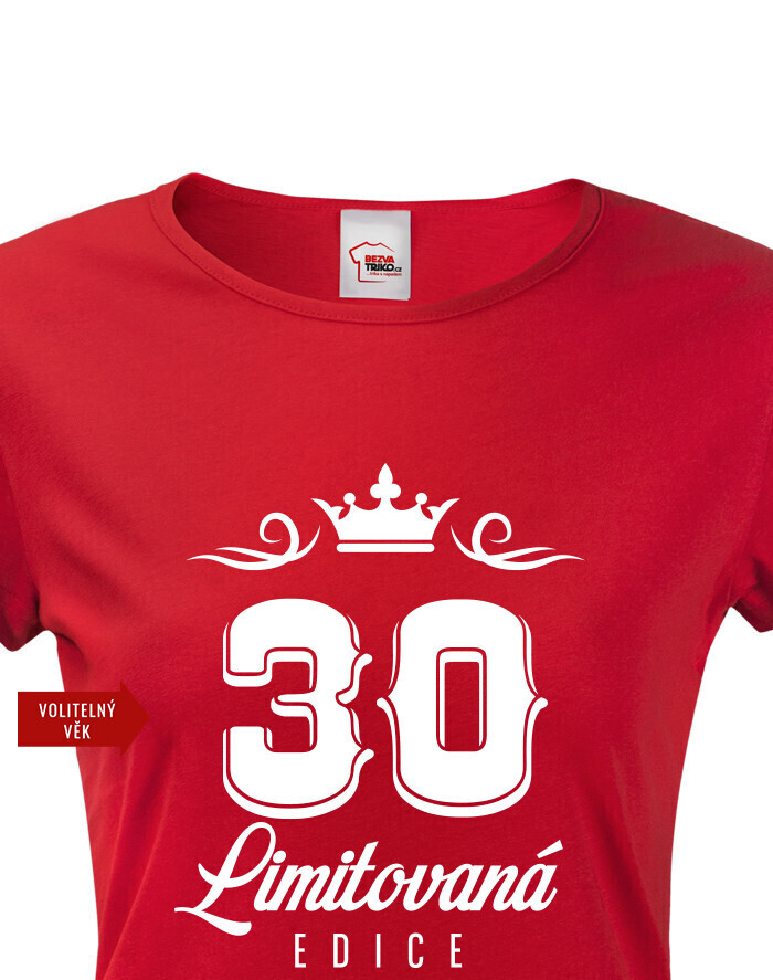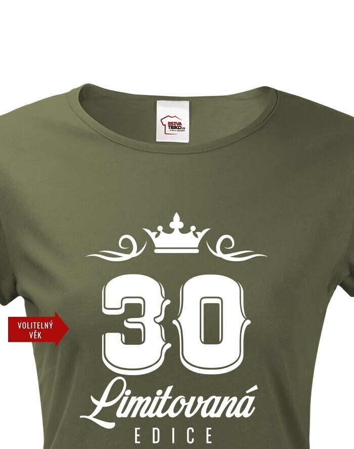 Originálne narodeninové dámské tričko s potlačou "LIMITOVANÁ EDÍCIA" a voliteľným vekom. Urobte radosť oslávenkyni s nezabudnuteľným tričkom. Dámské tričko urobí veľkú parádu. Tričko bude skvelé na tmavom melíre, ale s klasickou čiernou tiež určite nič nepokazíte. Urobte radosť babke, mamine, alebo partnerke s týmto vtipným tričkom s potlačou