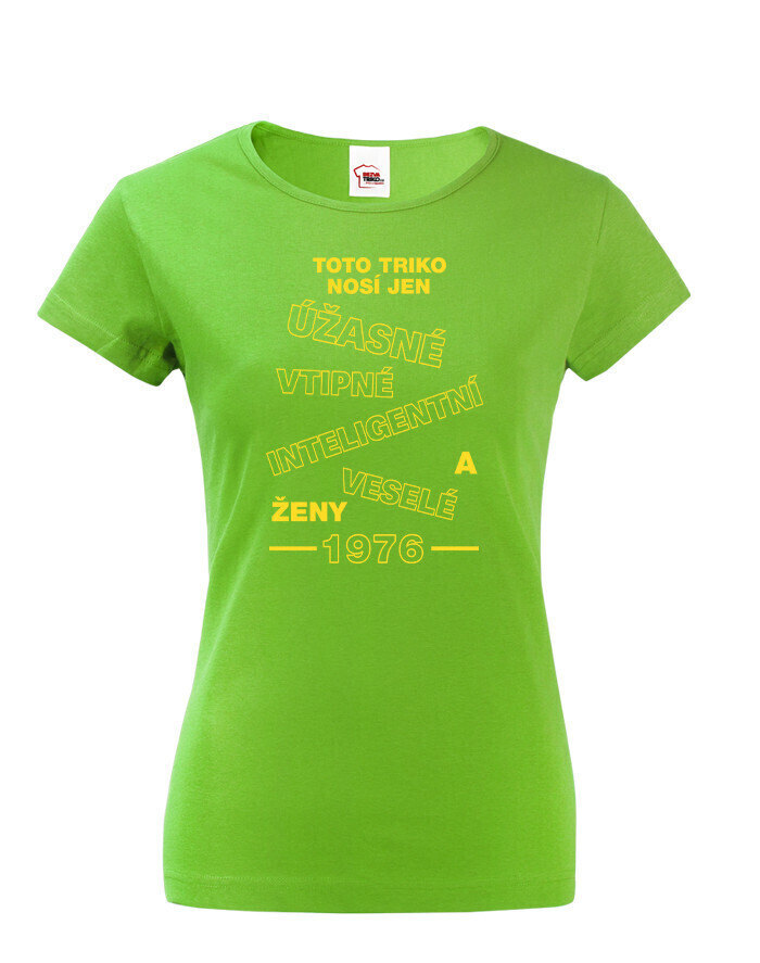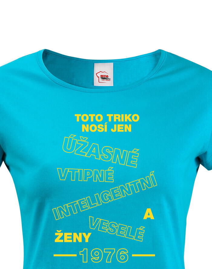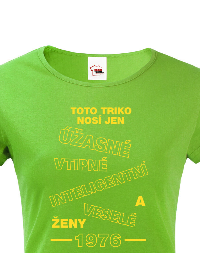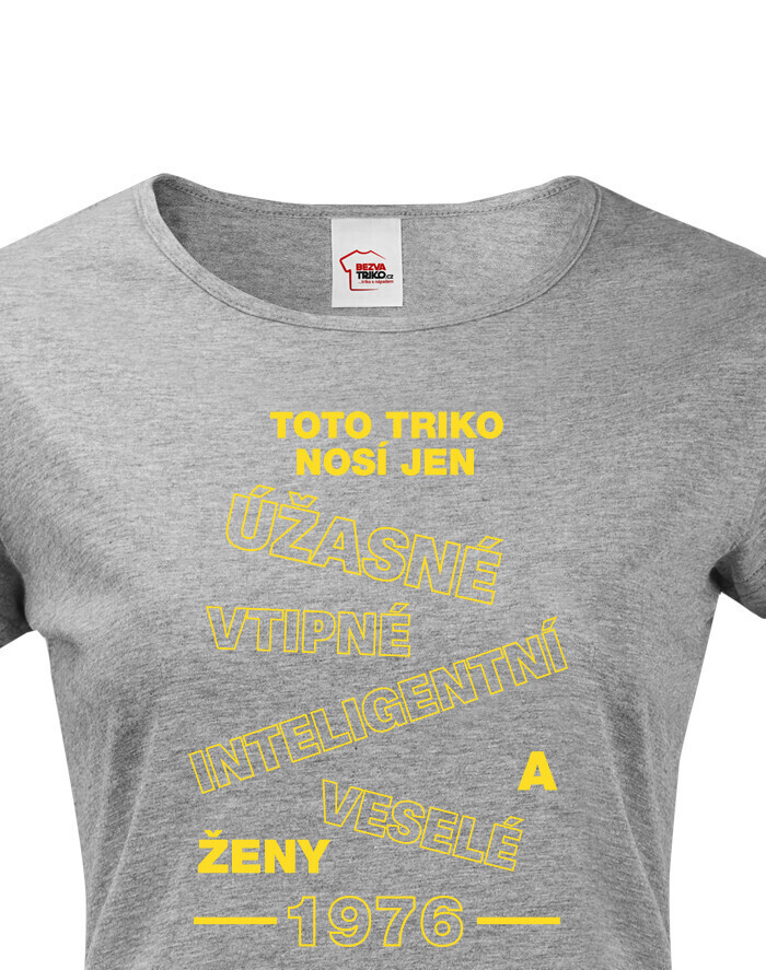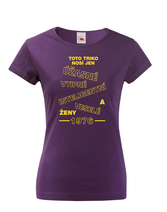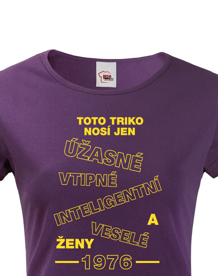 Toto dámské tričko s potiskem ,,Toto triko nosí jen úžasné, vtipné, inteligentní a veselé ženy + rok narození,, bude ideálním narozeninovým dárkem. Samozřejmě nezáleží na tom, jestli oslavujete narozeniny nebo si jen chcete připomenout, jak moc jste úžasná, toto tričko Vám dodá potřebnou dávku sebevědomí a energie. Ideální dárek pro každou ženu, která si zaslouží být uctěna a oslavována! Nezapomeňte nám do poznámky doplnit rok, který budeme tisknout na tričko. Triko s potiskem bude originálním a vtipným dárkem k narozeninám. Na tričko Vám rádi dotiskneme jméno nebo další přání.