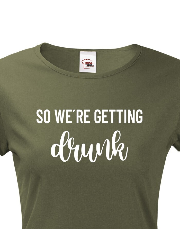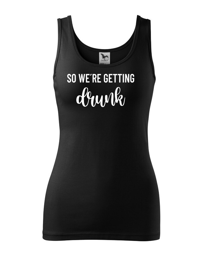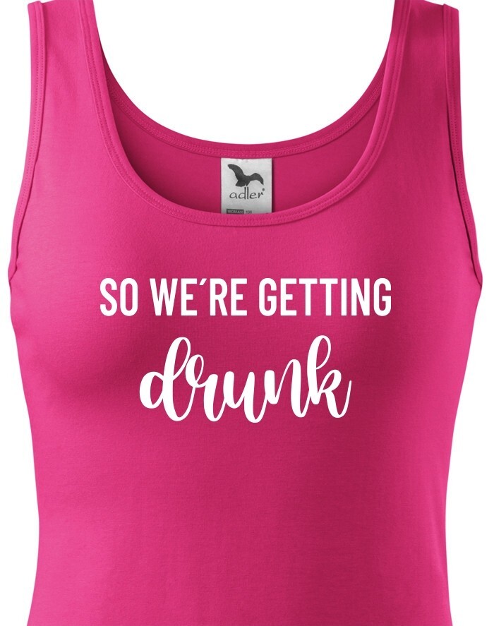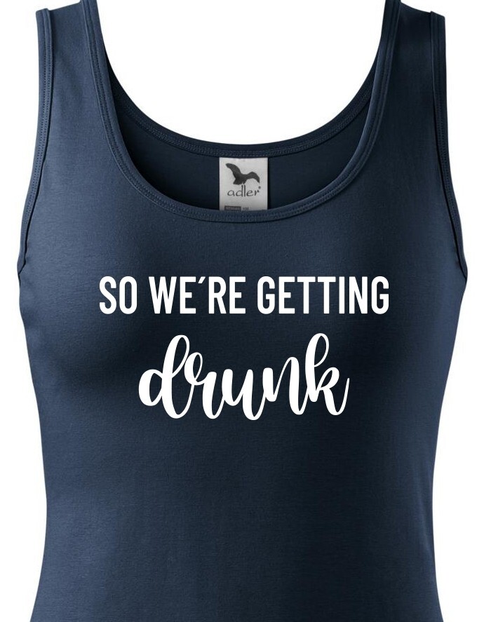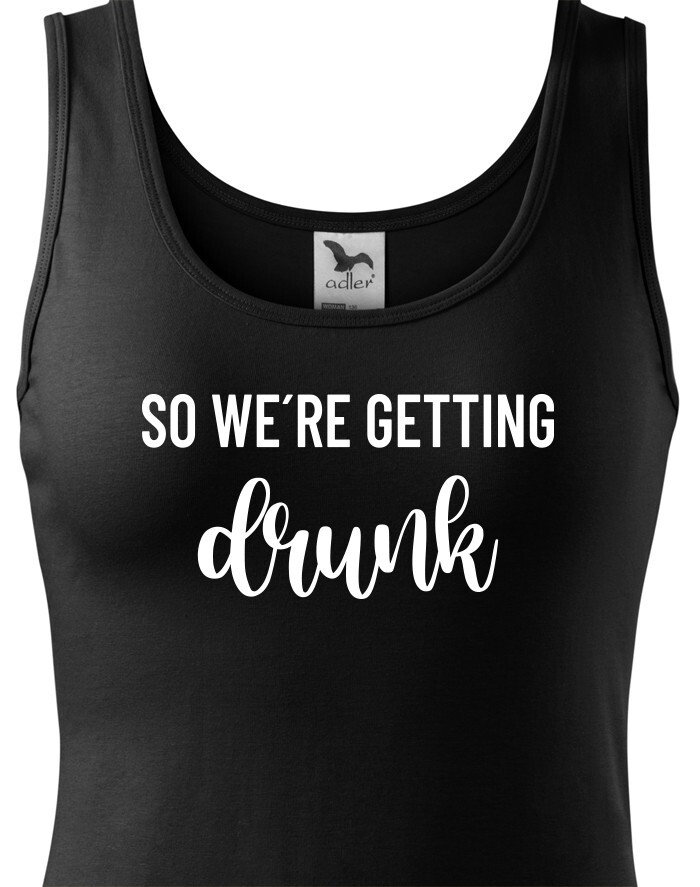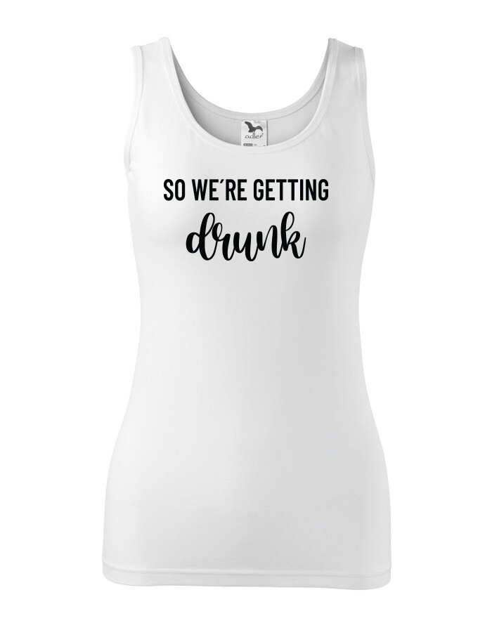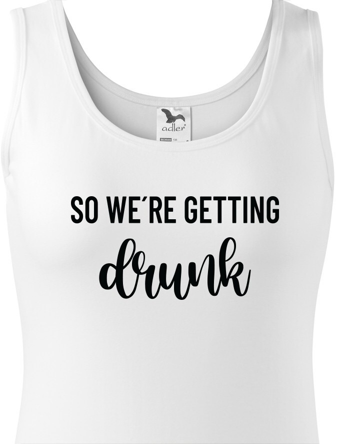 Chystáte se na rozlučku se svobodu a hledáte stylová rozlučková trika. Tohle triko bude skvělé pro nezapomenutelnou párty. Triko So we´re getting Drunk je určeno jak jinak než pro tým nevěsty. Trika budou skvělá v černo bílé verzi, vedle nešlápnete ani s ostatními barevnými variantami.