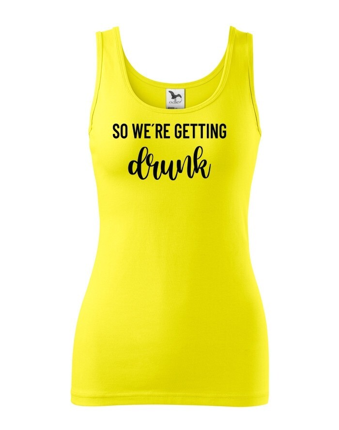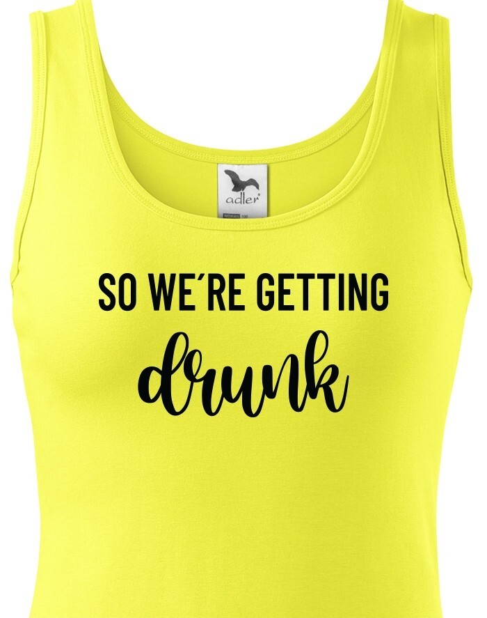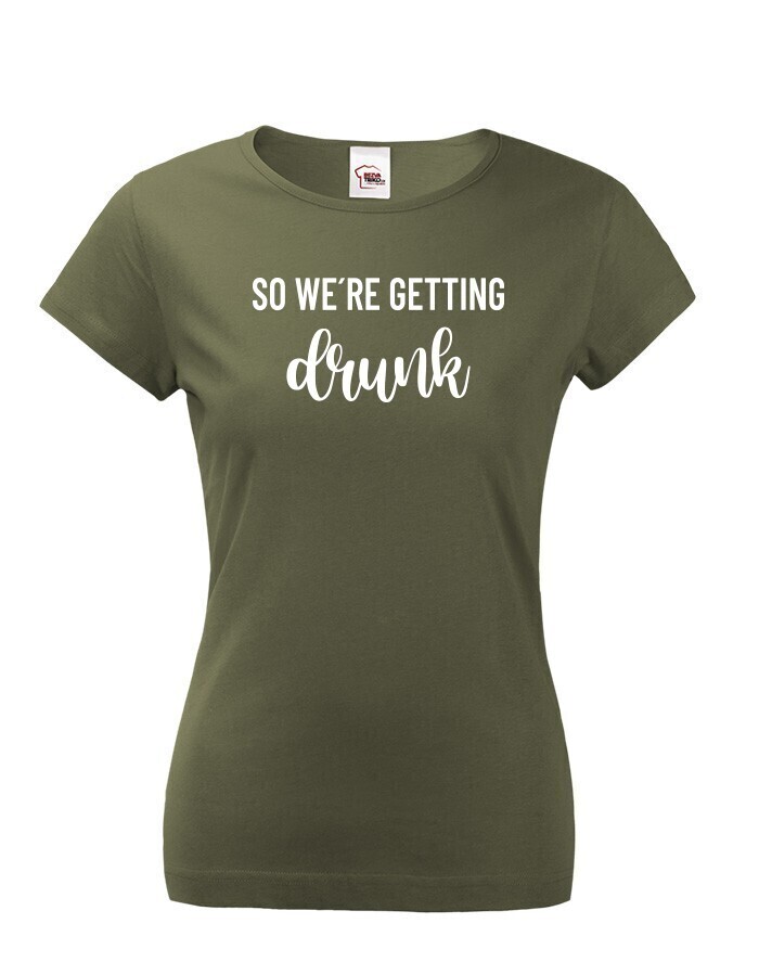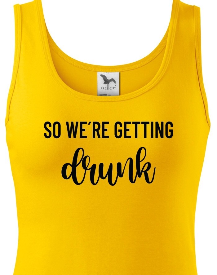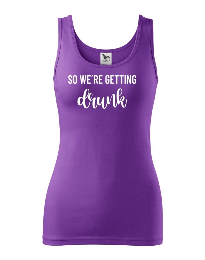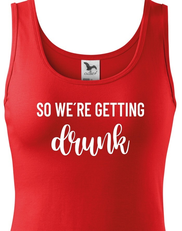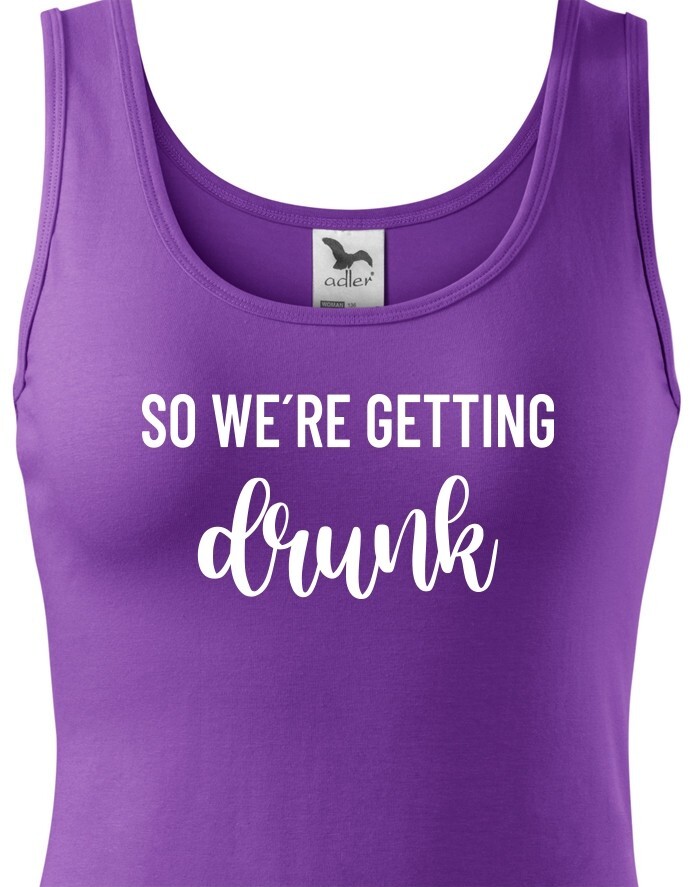 Chystáte se na rozlučku se svobodu a hledáte stylová rozlučková trika. Tohle triko bude skvělé pro nezapomenutelnou párty. Triko So we´re getting Drunk je určeno jak jinak než pro tým nevěsty. Trika budou skvělá v černo bílé verzi, vedle nešlápnete ani s ostatními barevnými variantami.