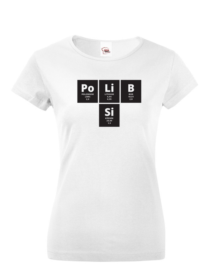 Obľúbené tričko s potlačou s akože "periodickou sústavou prvkov" mrk mrk. ;-) Chemické značky samozrejme dávajú dohromady Po Li B Si. Len si predstav, ako toto tričko dokonale sadne na hodinu chémie. Tričko bude skvelé pre rebela, ktorý sa nebojí provokovať. Tričko s motívom Polib si si zamilujete.