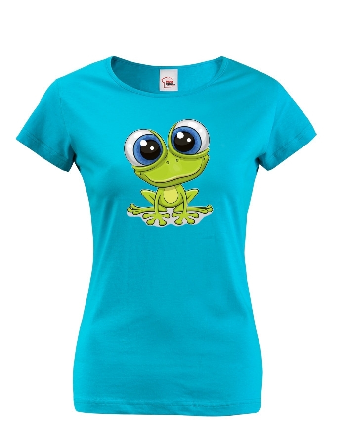 Dámské tričko se stylovým potiskem žáby. Žáby nejsou jen obyčejné zvířátka. Věděli jste, že žába dokáže předpověď počasí? . Potisk, která perfektně vynikne na každé barvě.