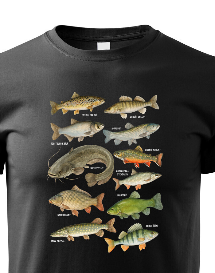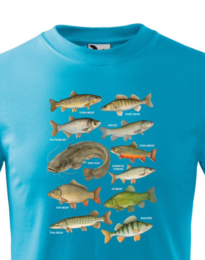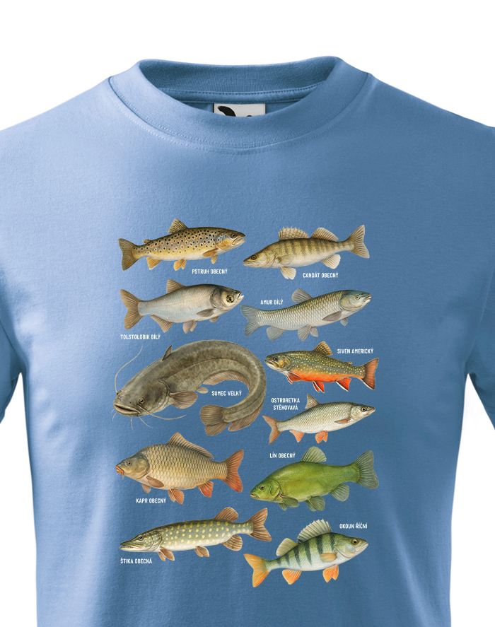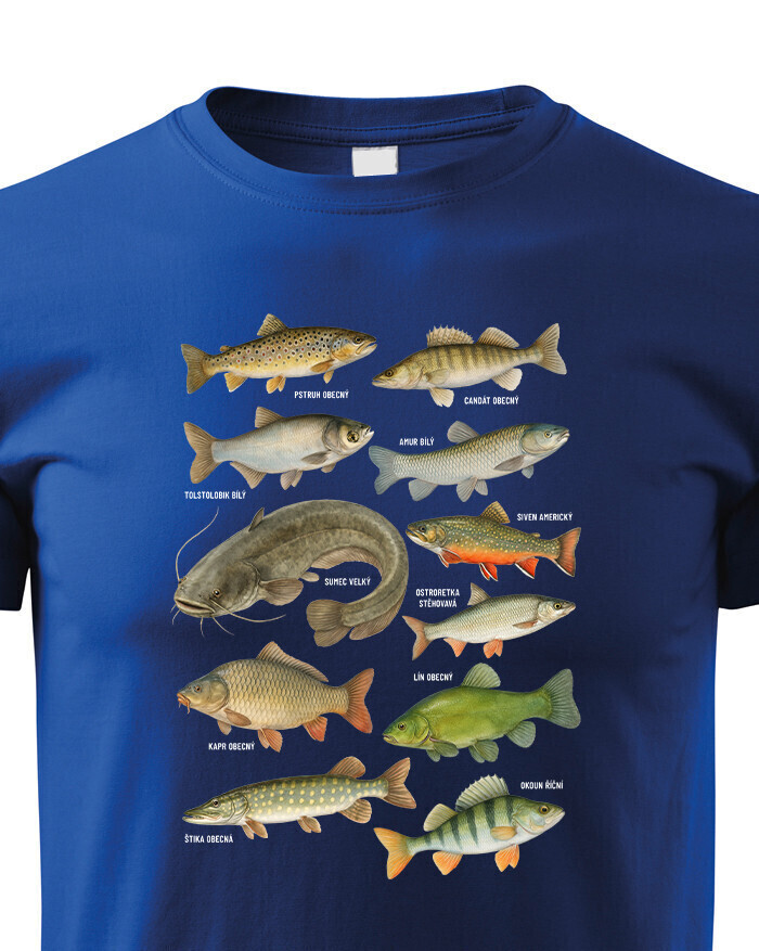 Objavte štýlový a originálny kúsok pre malých milovníkov prírody – detské tričko s detailnou potlačou rýb. Tento motív prehľadne zobrazuje najznámejšie druhy rýb našich vôd, ako sú kapor, šťuka, sumec, pstruh, ostriež a ďalšie, a dodáva tričku hravý a zároveň vzdelávací charakter. Tričko je ideálnou voľbou pre deti, ktoré majú rady prírodu, zvieratá a dobrodružstvo pri vode. Skvelo sa hodí do školy, na výlety, prázdniny, krúžky aj každodenné nosenie. Je vyrobené z kvalitného, mäkkého a priedušného materiálu, ktorý zabezpečuje maximálne pohodlie počas celého dňa a je šetrný k detskej pokožke. Potlač je precízne spracovaná, farebná a odolná, takže si zachová svoj vzhľad aj po mnohých praniach. Toto detské tričko je skvelým darčekom pre malých rybárov, milovníkov zvierat a prírody. Hodí sa ako darček k narodeninám, na Vianoce, ku Dňu detí alebo len tak pre radosť. Vďaka svojmu pohodlnému strihu a univerzálnemu dizajnu sa jednoducho kombinuje s džínsami, kraťasmi či teplákmi. Je to praktický a štýlový doplnok, ktorý si deti rýchlo obľúbia a radi ho budú nosiť.