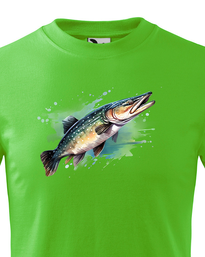 Šťuka, dravá ryba z čeľade šťukovitých nesmie na tričku pravého rybára rozhodne chýbať. Snáď najznámejšia európska dravá ryba vôbec sa stala predlohou tohto trička pre rybárov. Motív je vedený tenkou linkou na prsiach a určite urobí radosť každému rybárovi. Tričko pre malých rybárov s potlačou šťuky bude skvelé ako darček k narodeninám, Vianociam alebo len tak pre radosť.