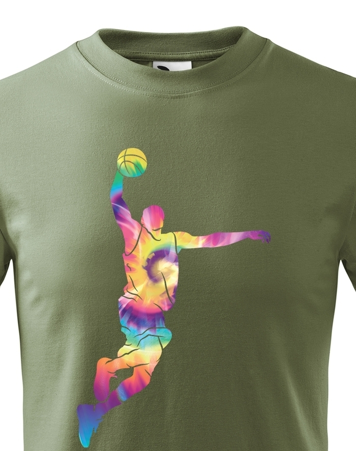Detské tričko s potlačou basketbalistu je dokonalým spoločníkom pre každého nadšeného mladého basketbalistu. Jeho kombinácia funkcionálneho dizajnu a výraznej potlače poskytuje originálny štýl, ktorý určite zaujme každé dieťa. Toto detské basketbalové tričko je ideálnym doplnkom pre každého mladého športovca, ktorý sa vášnivo venuje basketbalu. Dieťa si v ňom môže vychutnávať svoje obľúbené basketbalové momenty. Na prednej strane trička je výrazná a detailne vypracovaná potlač s motivom basketbalistu. Tento obrázok zachytáva dynamiku športu a zdôrazňuje odhodlanie a vášeň pre hru. Basketbalista v skoku so zvýšenými rukami vytvára silný vizuálny dojem a pripomína dieťaťu, že so snahou a oddanosťou je možné dosiahnuť ciele. Okrem svojho štýlového vzhľadu tričko ponúka aj pohodlie a praktické využitie. Toto detské tričko je skvelým darčekom na narodeniny alebo Vianoce.