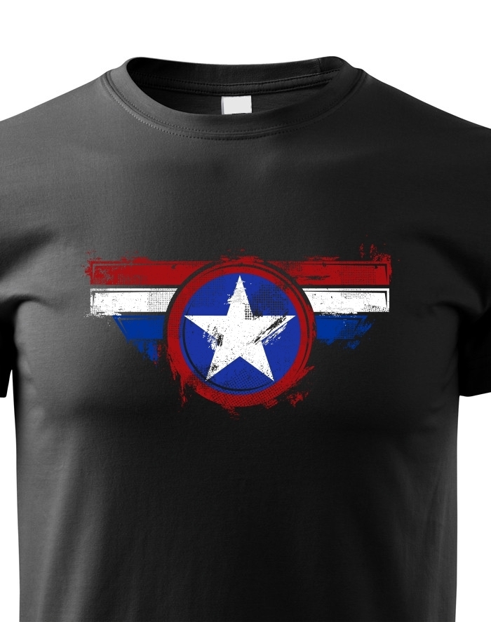Tričko pre milovníkov Marveloviek a obzvlášť americkým hrdinom Kapitána Ameriky. Kapitán Amerika alebo Steve Rogers bol vojakom, ktorý sa zúčastnil experimentu, ktorý mal vytvoriť armádu supervojakov. Vďaka tomu získal svoje schopnosti a stal sa tak dokonalou ľudskou bytosťou a superhrdinom. Kapitán Amerika je filmový aj komiksový hrdina a jedným z úplne prvých Avengerov. Avengers sú superhrdinský tím všetkých čias so superhrdinami ako je napríklad Iron Man, Hulk, Black Widow a Kapitán Amerika. Tričko s logom štítu Kapitána Ameriky sa bude skvele vynímať vo vašom šatníku a bude tiež skvelým darčekom pre všetkých obdivovateľov toho amerického hrdinu.