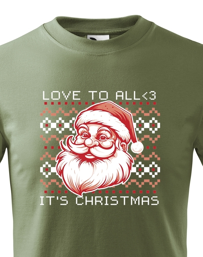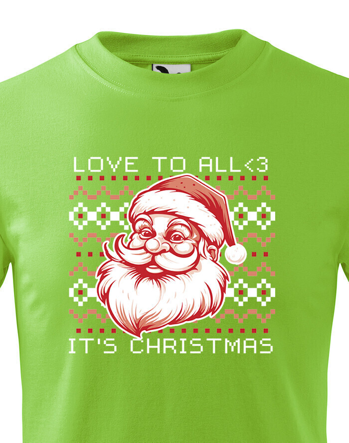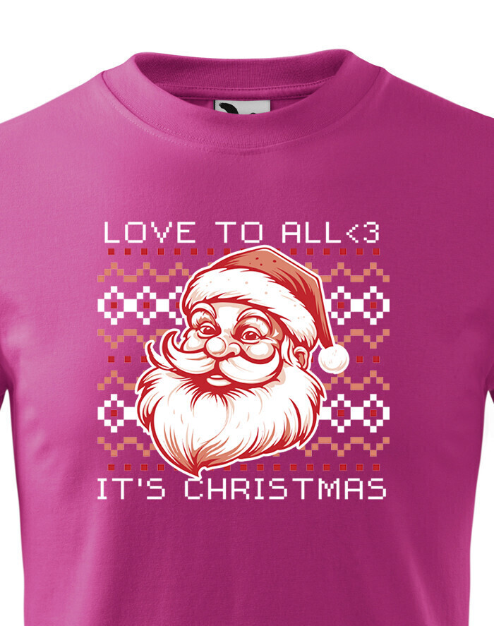 Toto detské vianočné tričko je absolútnym zjazdom do krajiny vianočnej kúzelnosti. Na ňom nájdete ohromujúcu potlač s veselým Santa Clausom, ktorý má pripravené vrece darčekov a úsmev, ktorý roztaví srdce každého dieťaťa. Jeho tradičný biely plnovousec a čiapka s chomútom sú neodmysliteľnou súčasťou vianočných sviatkov. No to nie je všetko! Toto tričko sa vyznačuje aj nápisom "Love to all. It is Christmas." Tento nápis zdôrazňuje význam vianočných sviatkov, ktorý spočíva v šírení lásky a radosti. Je to výraz všetkého, čo vianočný čas predstavuje - šťastie, rodinné puto a darčeky. Detské vianočné tričko s touto potlačou je vhodné pre všetky vianočné aktivity. Vaše dieťa môže byť oblečené v ňom počas návštevy u babičky a dedka, výmeny darčekov alebo na rodinnom vianočnom večeri. Toto tričko prinesie vianočnú atmosféru a šíri pocit pokoja a radosti. Ak hľadáte ideálny spôsob, ako dodať svojmu dieťaťu vianočnú náladu, toto tričko s potlačou Santa Clausa a nápisom "Love to all. It is Christmas" je práve ten správny darček. Nechajte ich osláviť sviatky v štýle a s úsmevom na tvári!