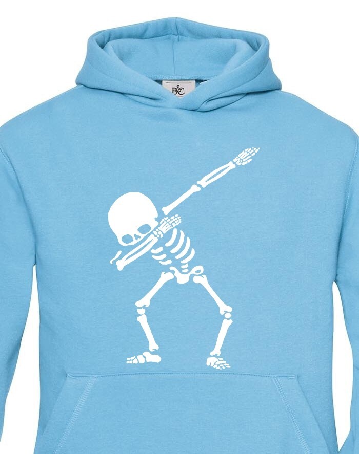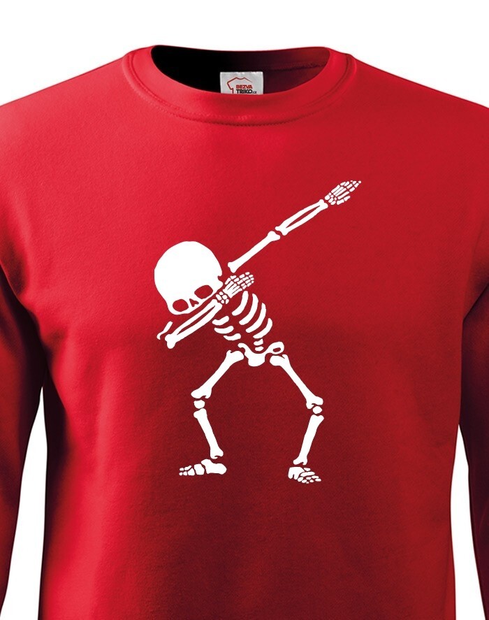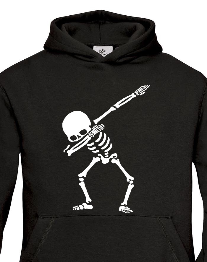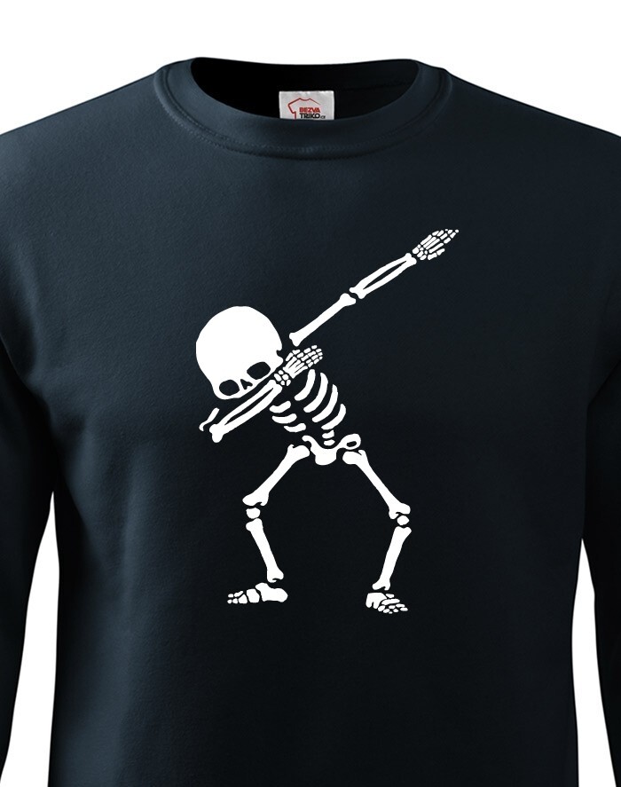 Táto vtipná mikina s potlačou kostry urobí radosť každému výmyselníkovi a výmyselníčke! Potlač je umiestnená na hrudi. Skrátka kostra na mikine je mega cool!