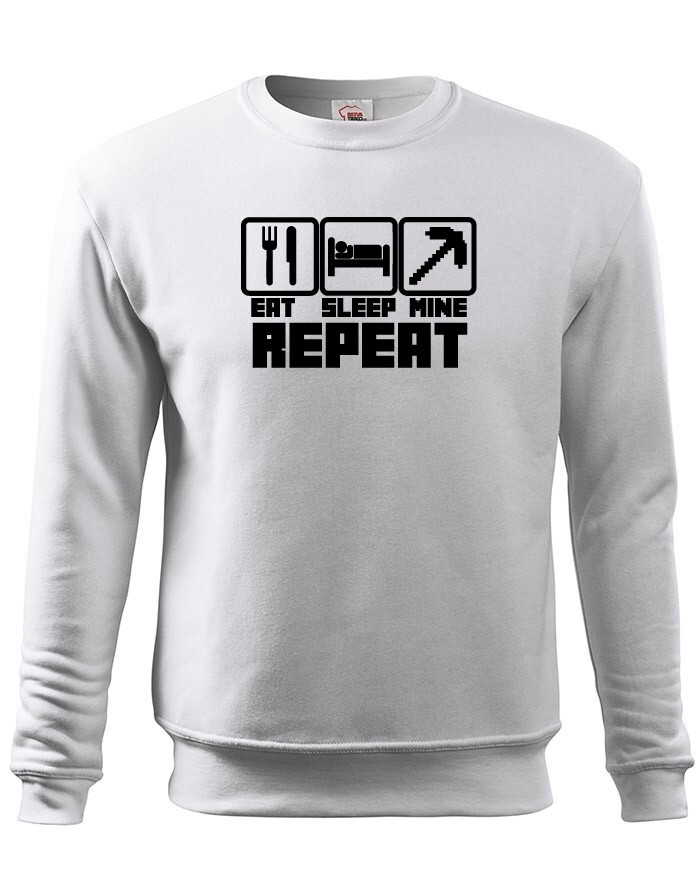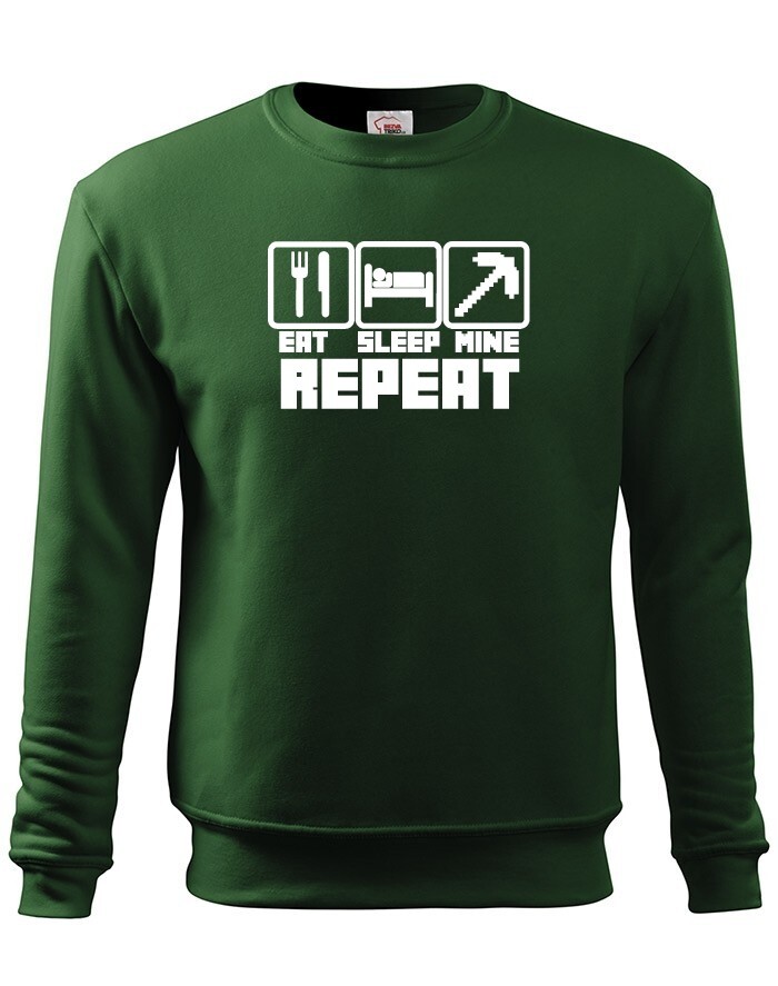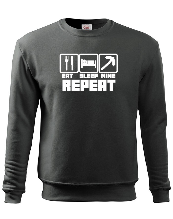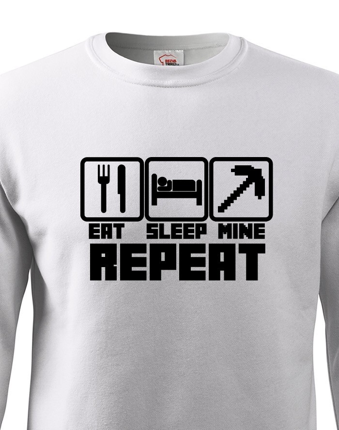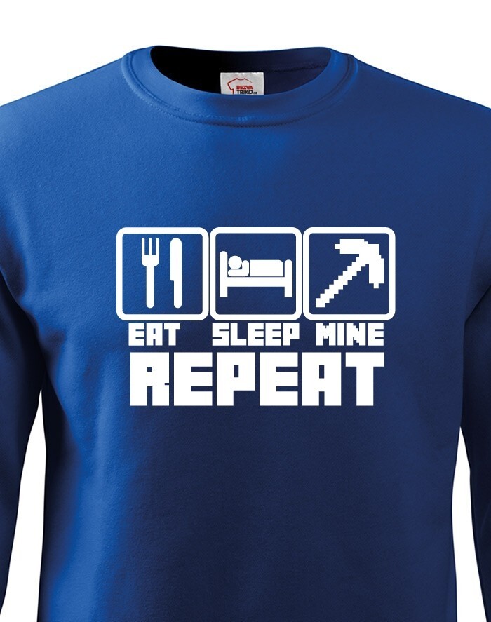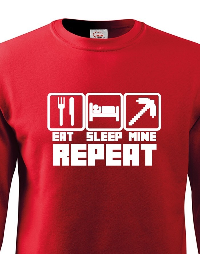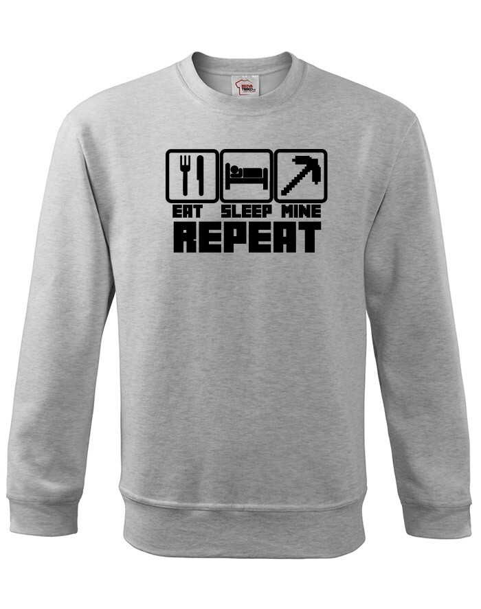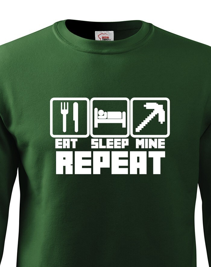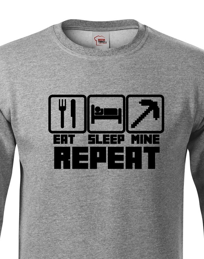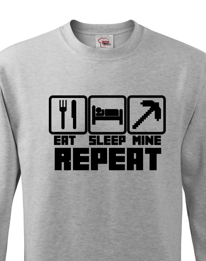 Hľadáte mikinu pre hráča obľúbenej hry Minecraft? Detská mikina Minecraft v niekoľkých farebných variáciách je to pravé. Urobí radosť každému zapálenému hráčovi tejto kultovej gamesky. Potlač s textom EAT SLEEP MINE REPEAT netreba hráčom tejto hry predstavovať.