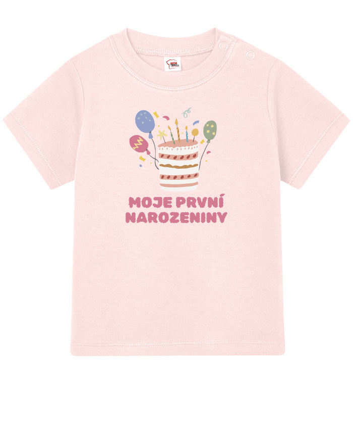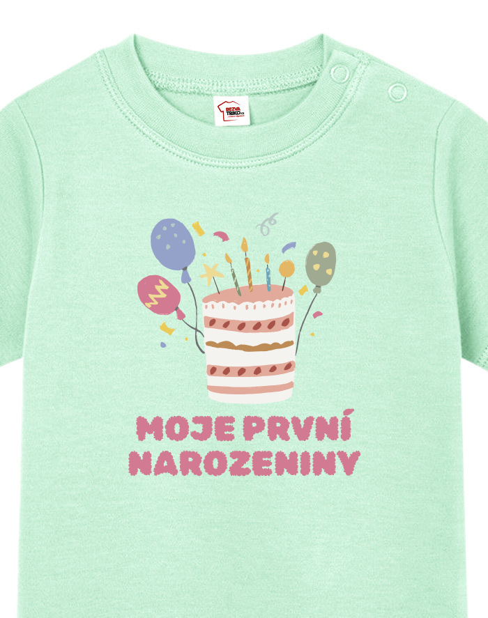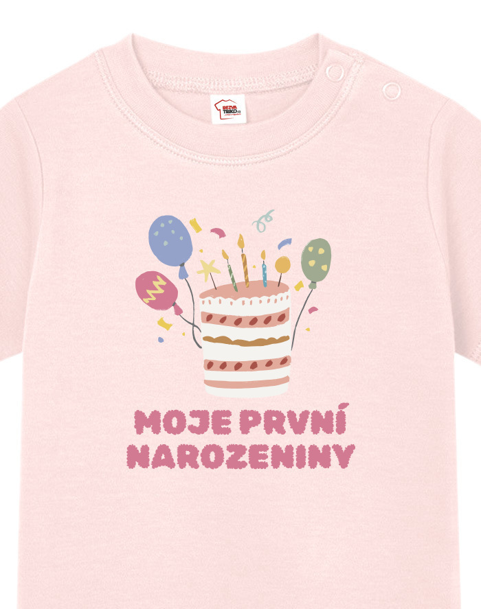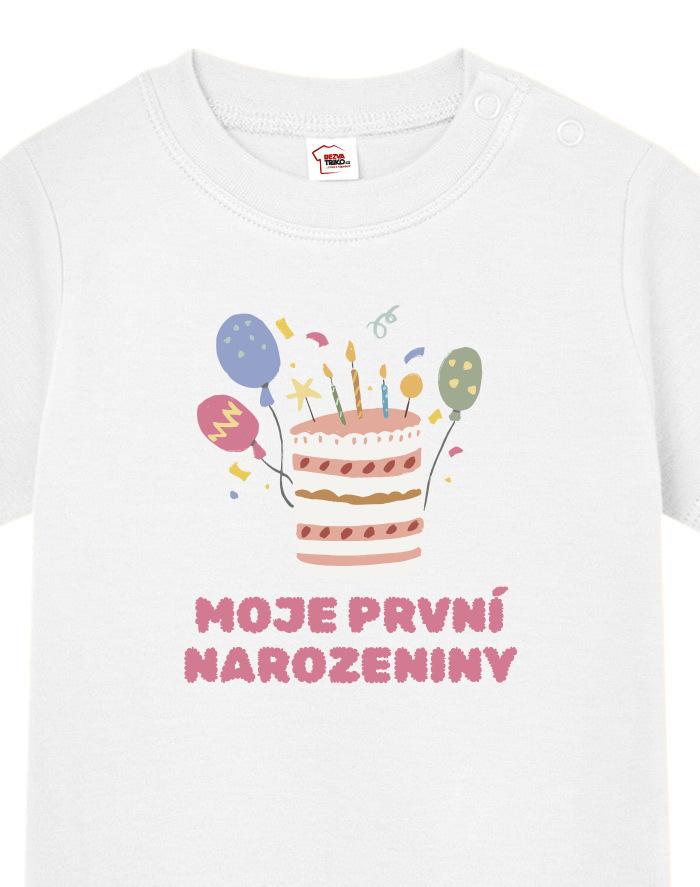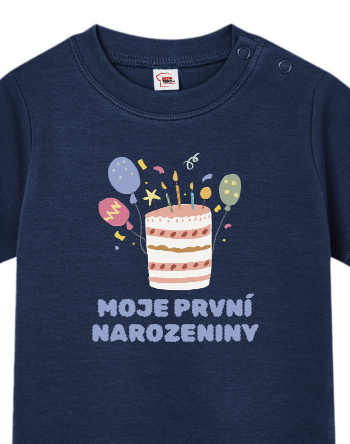 Oslávte ten najdôležitejší deň v živote vášho drobca s týmto roztomilým tričkom „Moje prvé narodeniny“! Hravý motív s farebnou tortou a číslom veku vyčarí úsmev nielen oslávencovi, ale aj všetkým naokolo.