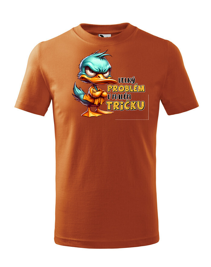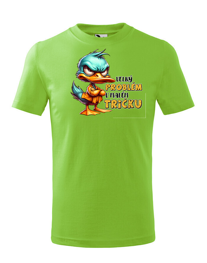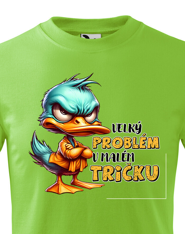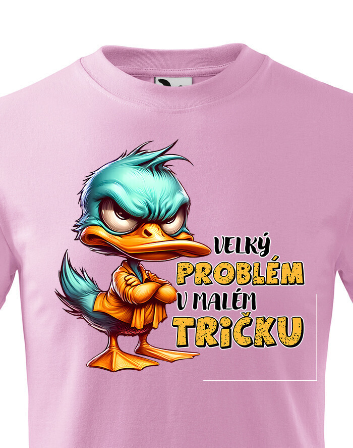 Toto dětské tričko s veselým motivem kačera a vtipným nápisem „Velký problém v malém triku“ je ideální volbou pro malé nezbedy, kteří se nebojí ukázat svou osobnost! Tričko je vyrobeno z měkké a prodyšné 100% bavlny, která zajišťuje pohodlí po celý den, ať už si vaše dítě hraje venku nebo odpočívá doma. Kvalitní potisk s výrazným kačerem a legračním sloganem nejen zaujme na první pohled, ale také odolá opakovanému praní, takže se nemusíte bát o jeho trvanlivost.